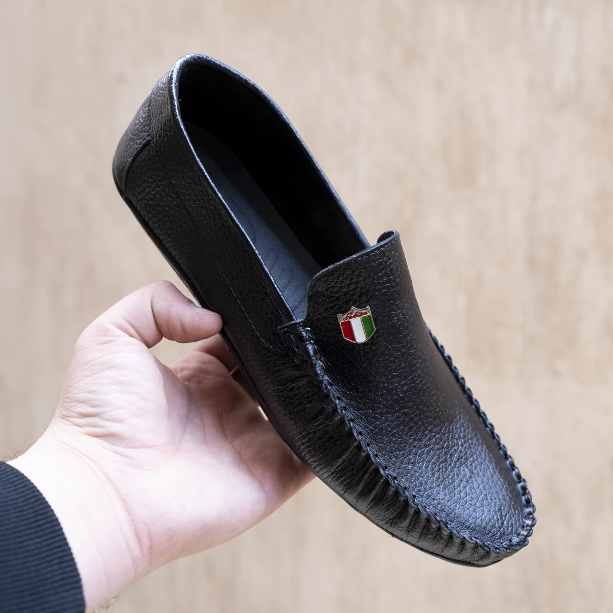 حذاء جلد طبيعي بقري نعل رابر ومبطن من الداخل
