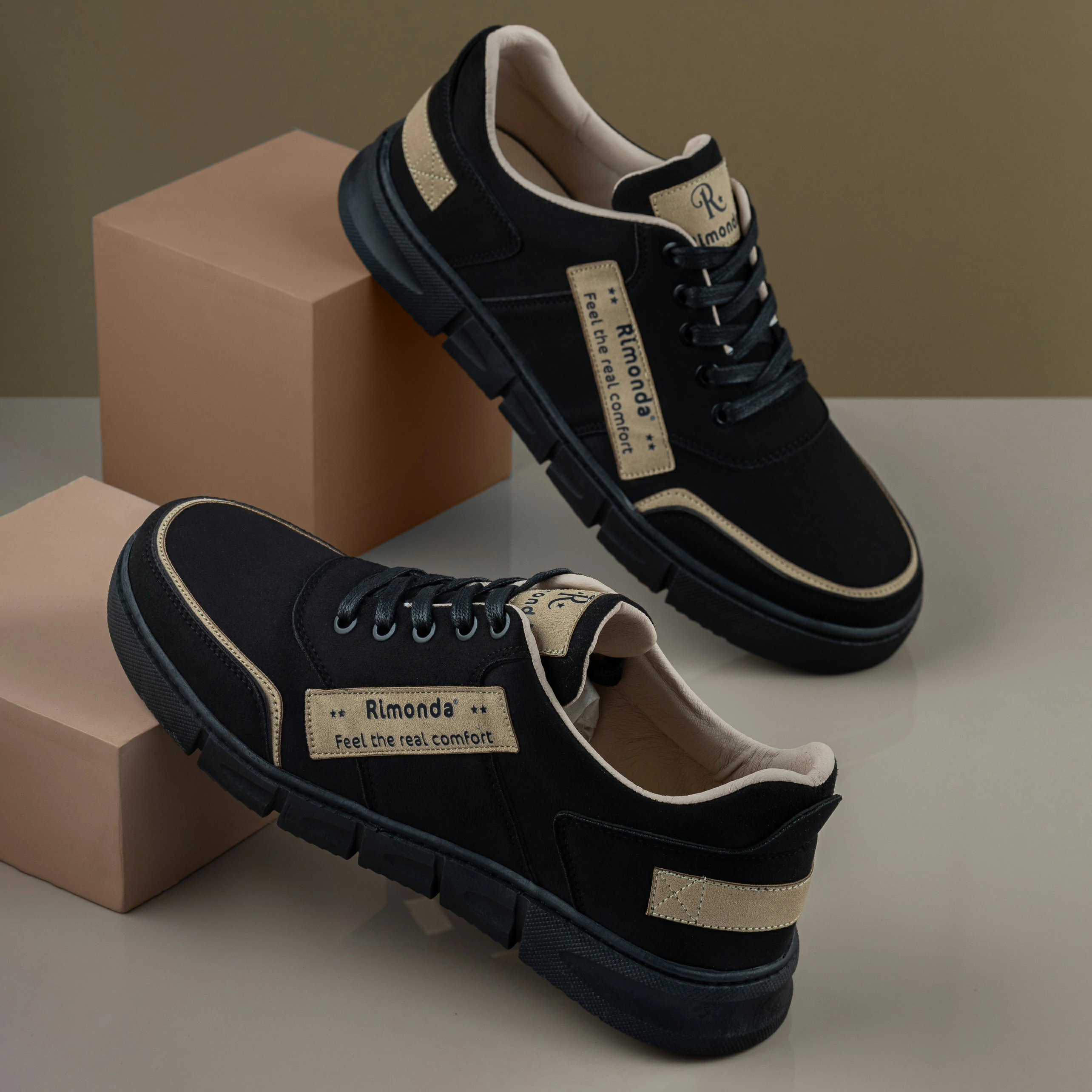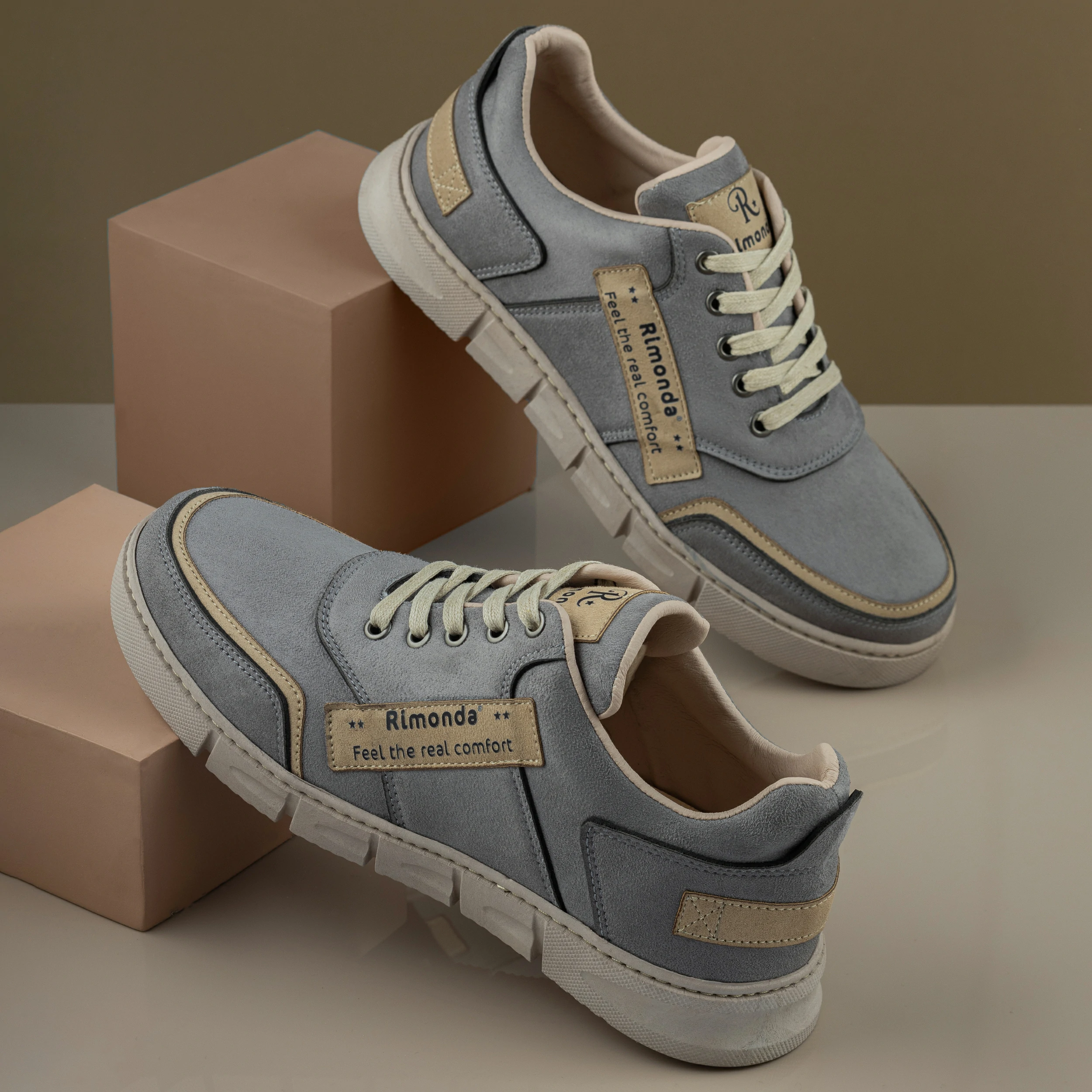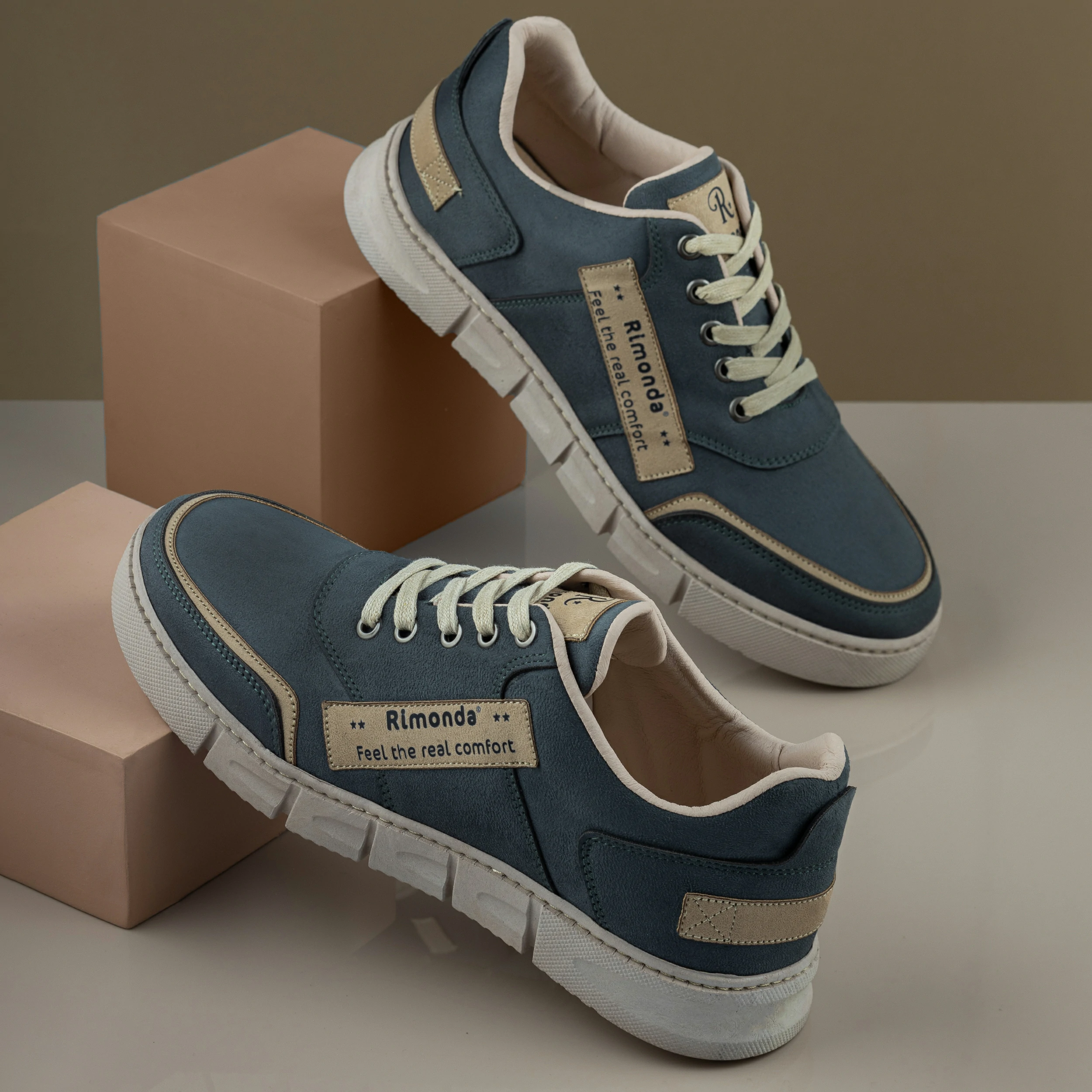 - الكوتشي مصنوع من جلد شمواه شيك مطعم بإتنين لون عشان يعطيه شياكة.