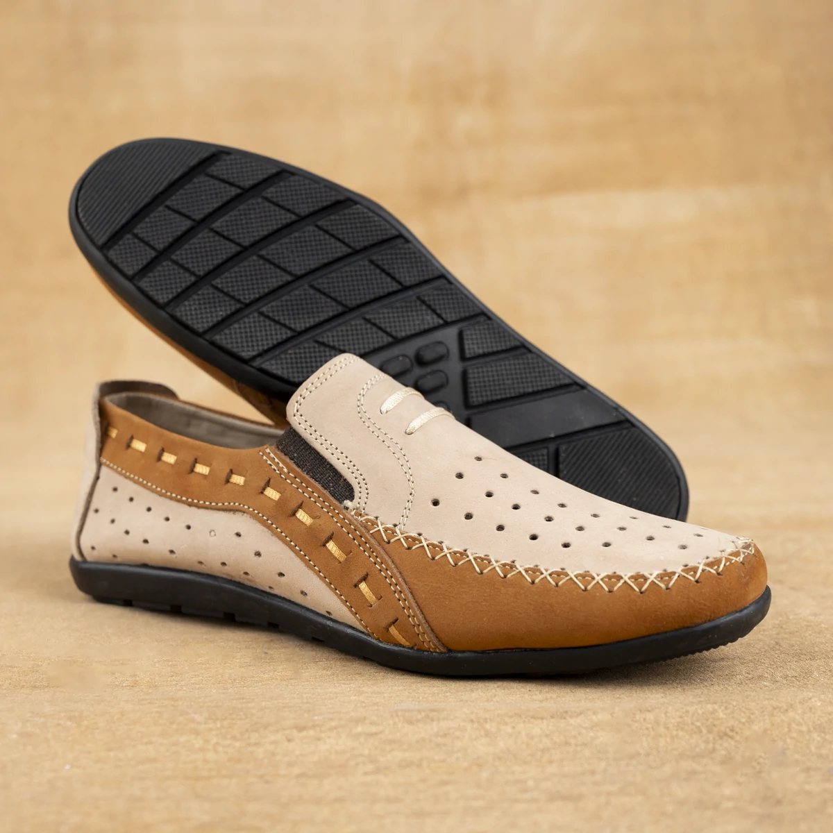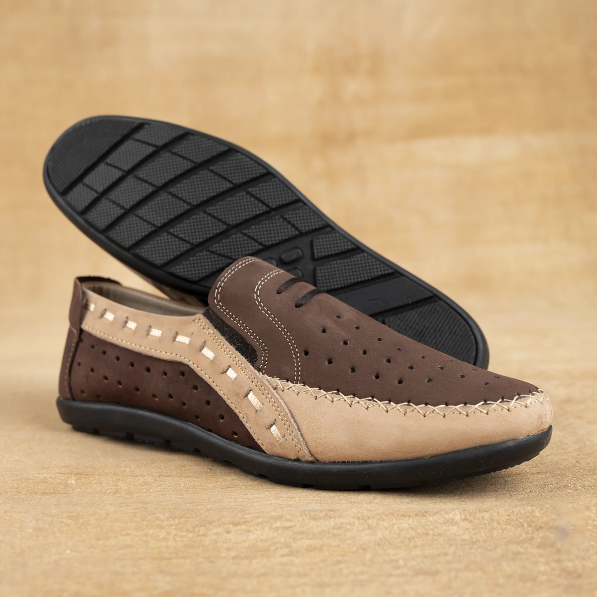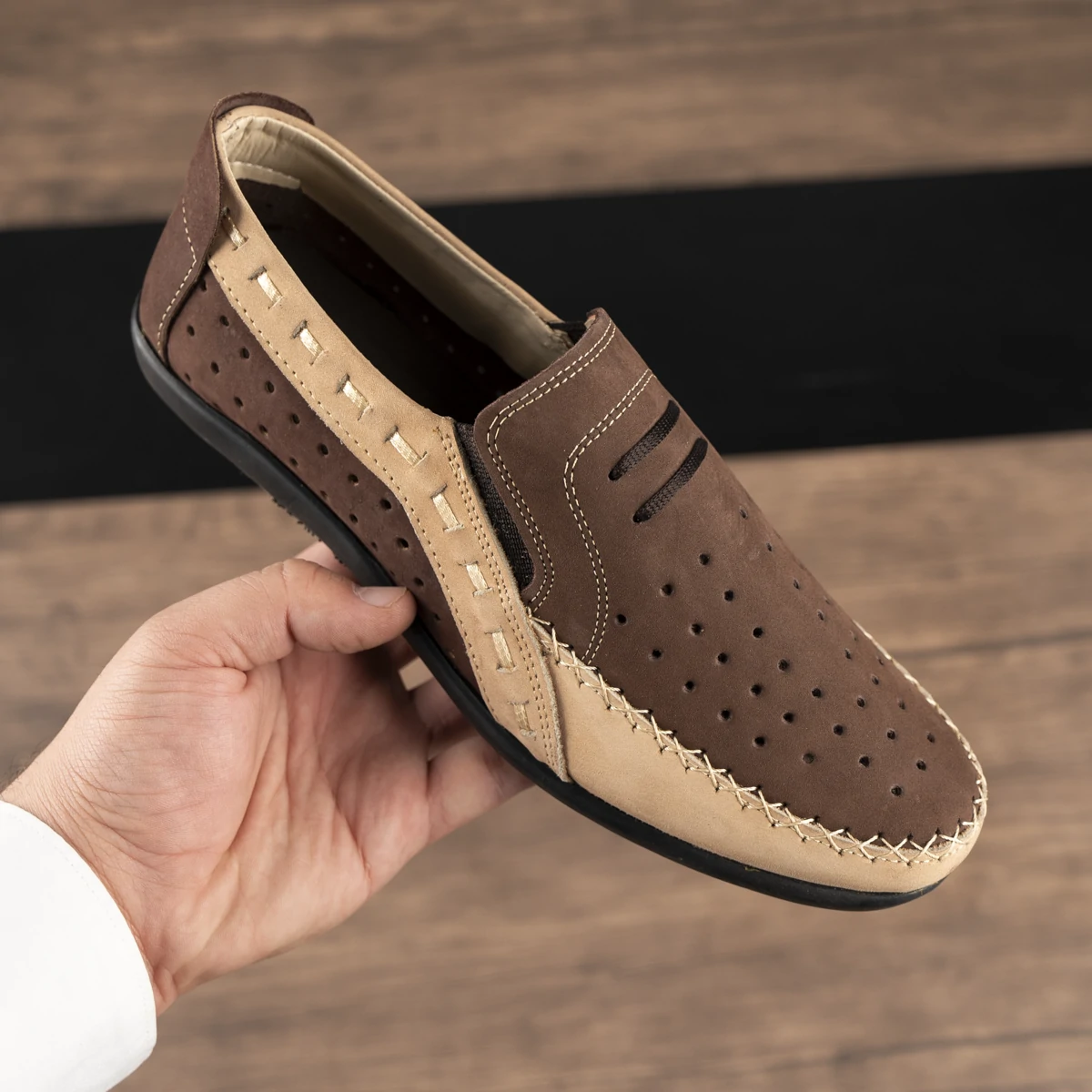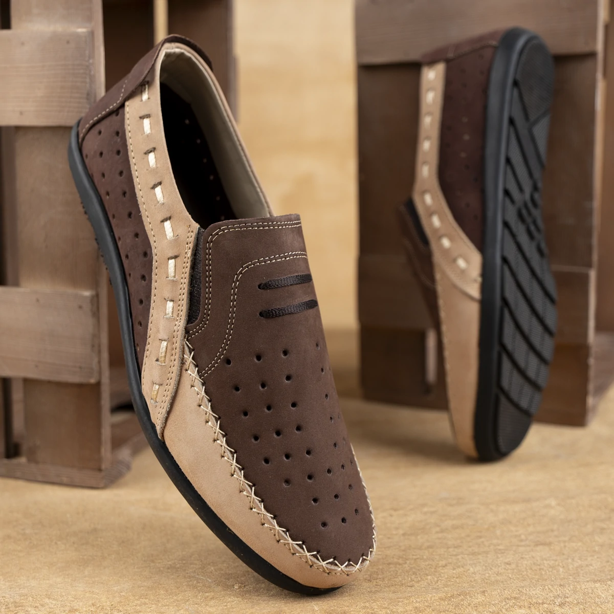 حذاء جلد طبيعي نعل رابر وفتحات تهوية - الأكثر مبيعًا