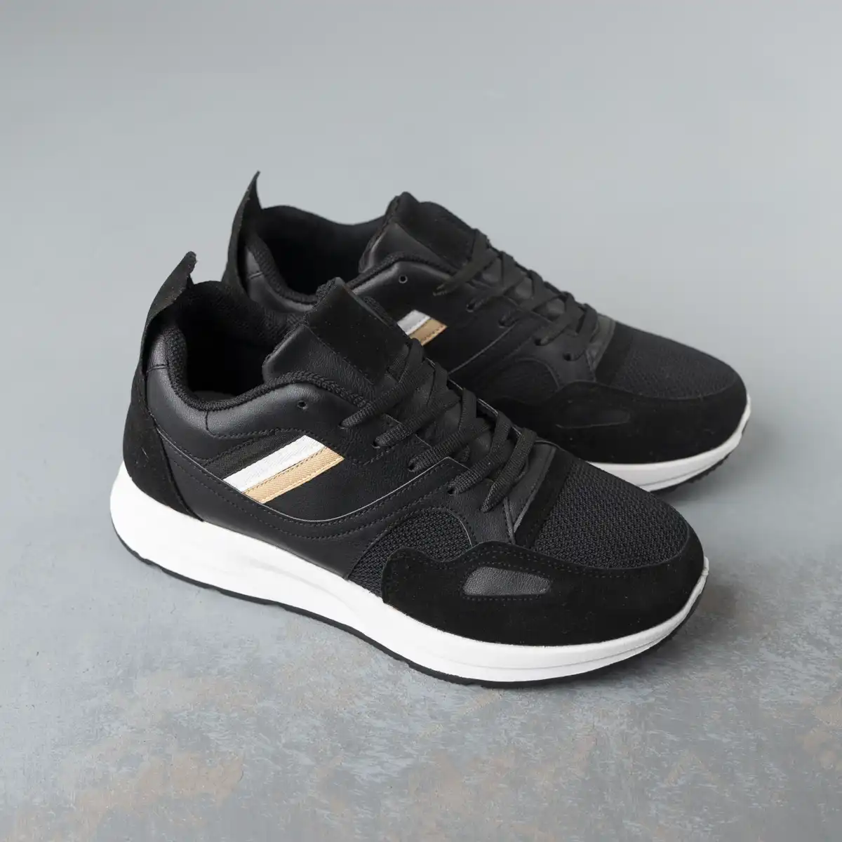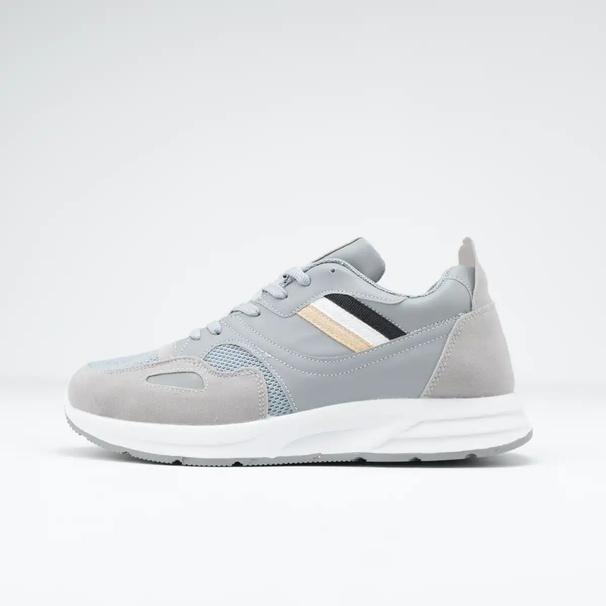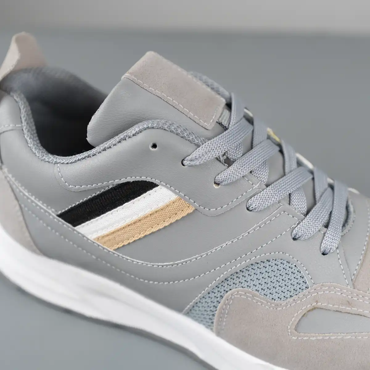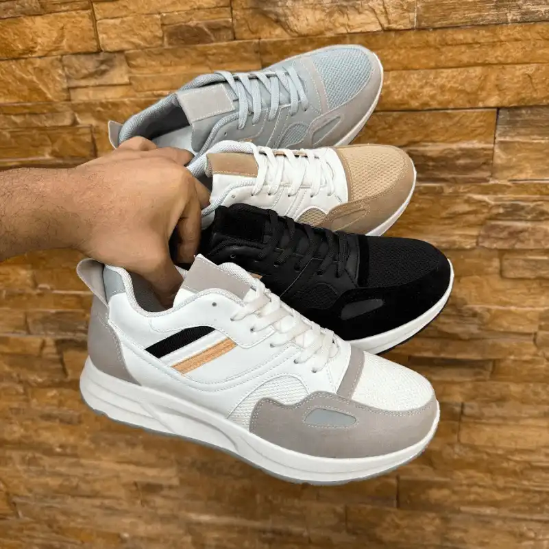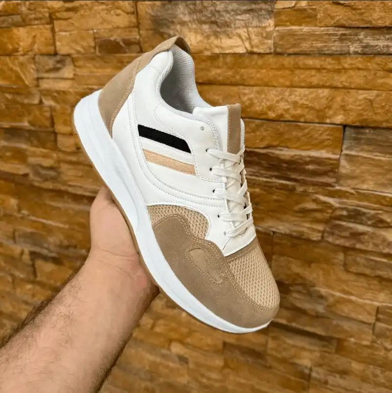 كوتش رجالي مصنوع من الجلد المطعم بالشمواه وأجذاء من التريكو سهل التنظيف مريح جدا وخفيف
