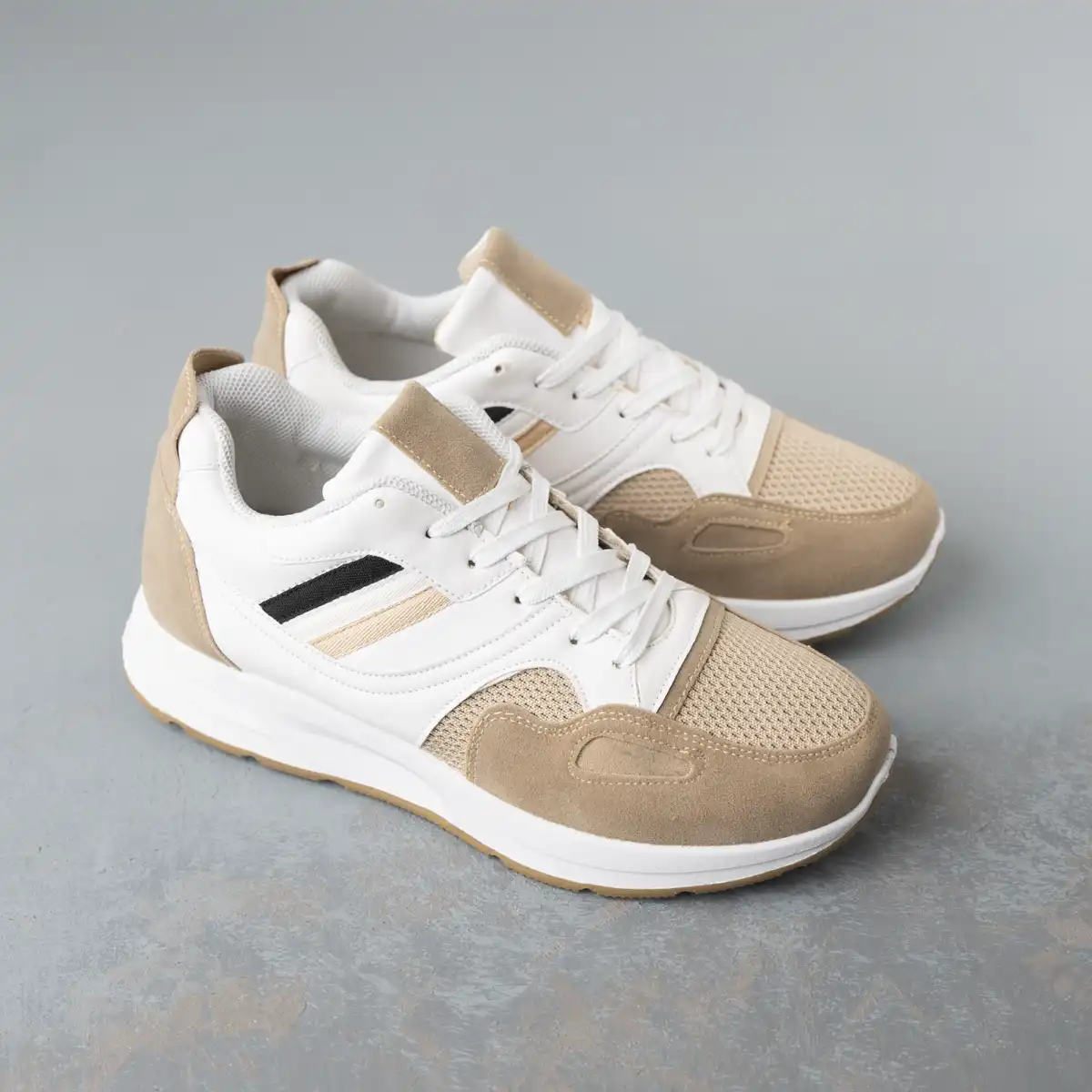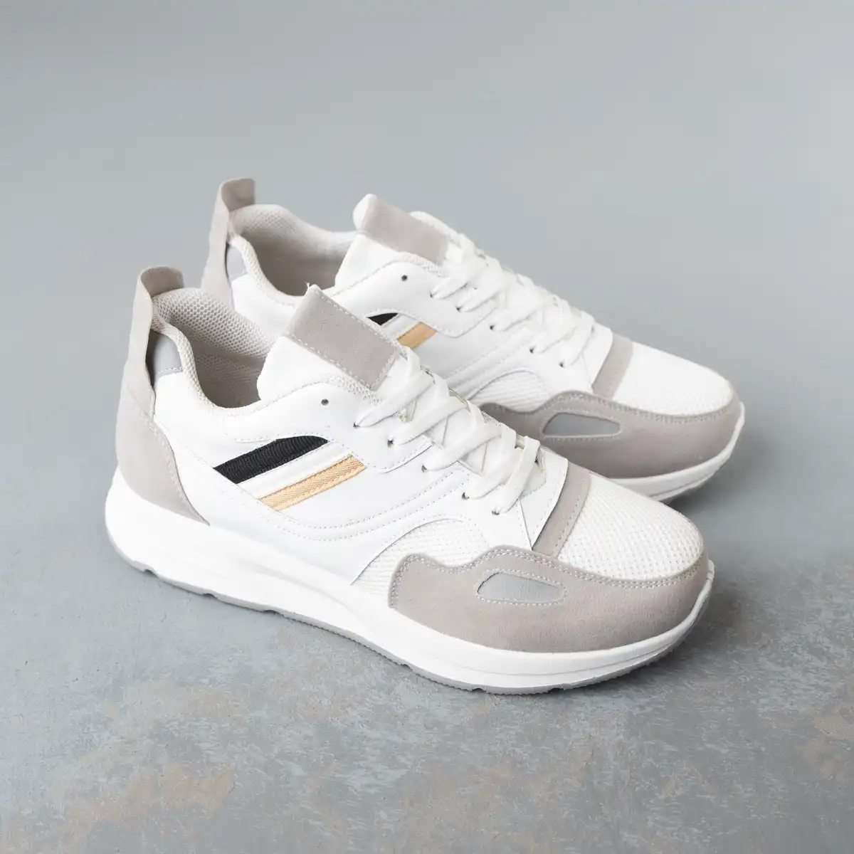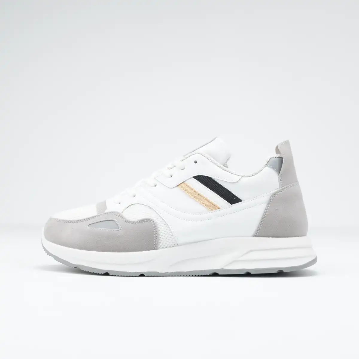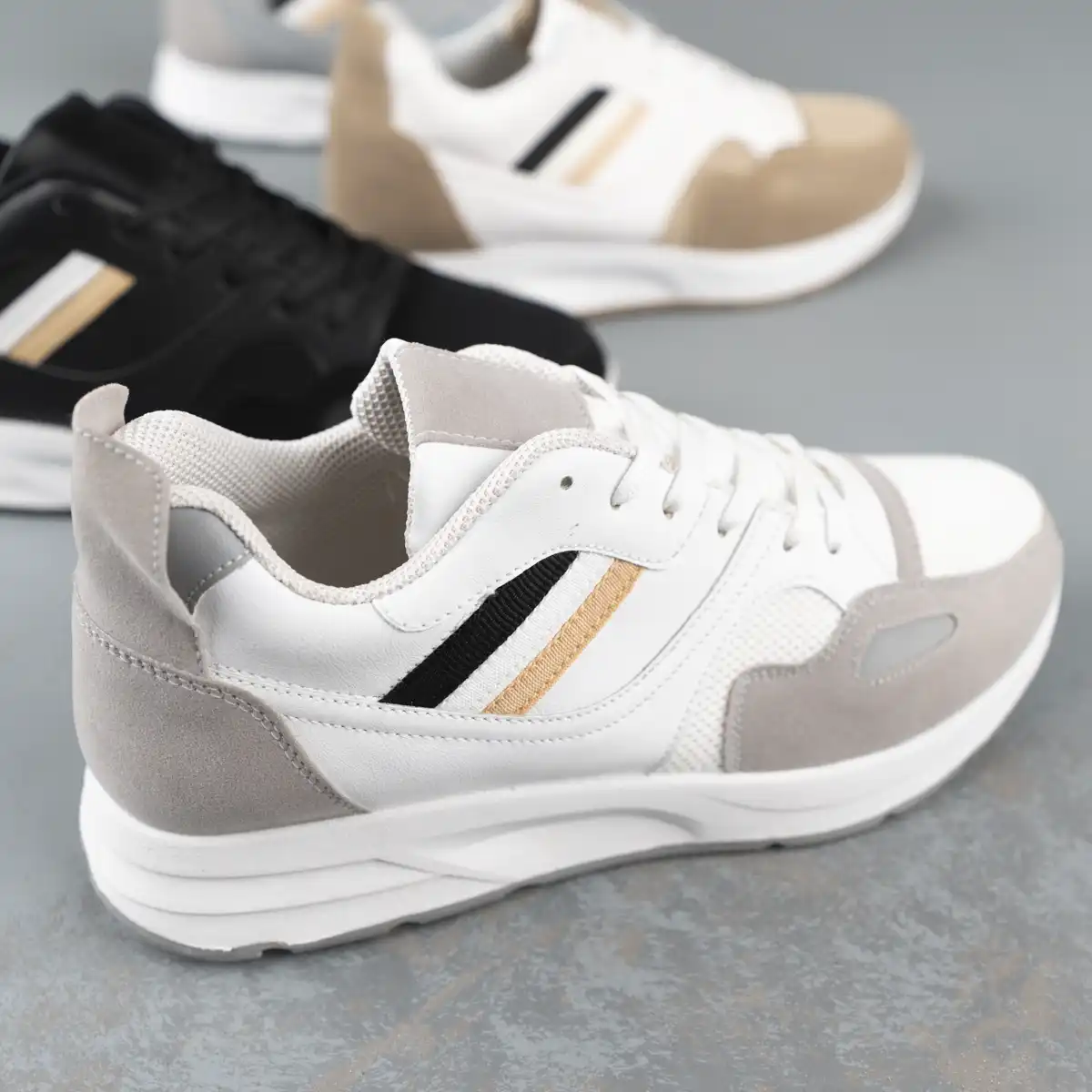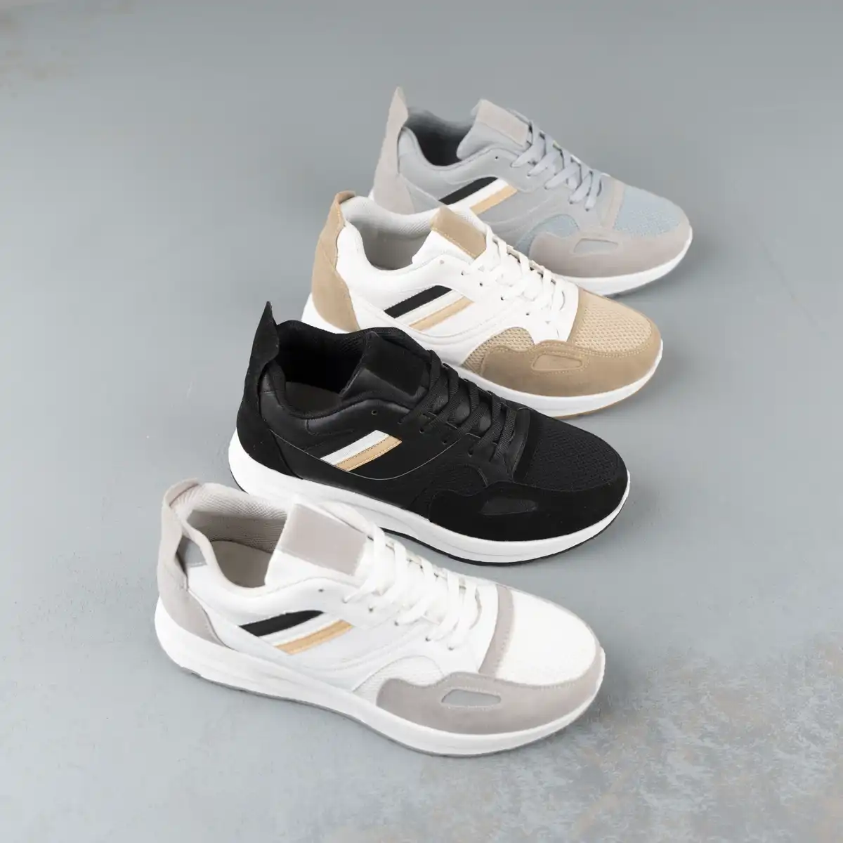 كوتش رجالي مصنوع من الجلد المطعم بالشمواه وأجذاء من التريكو سهل التنظيف مريح جدا وخفيف