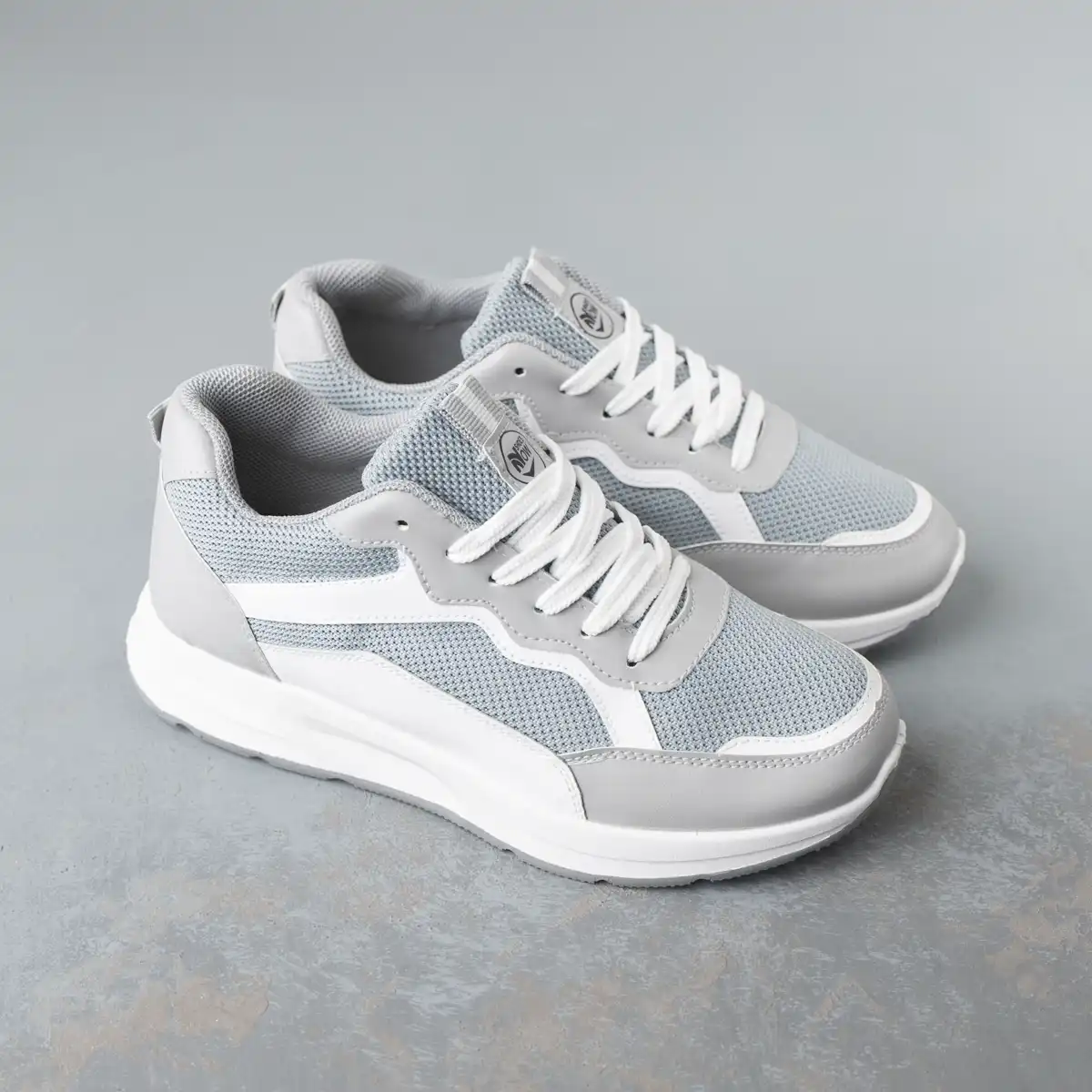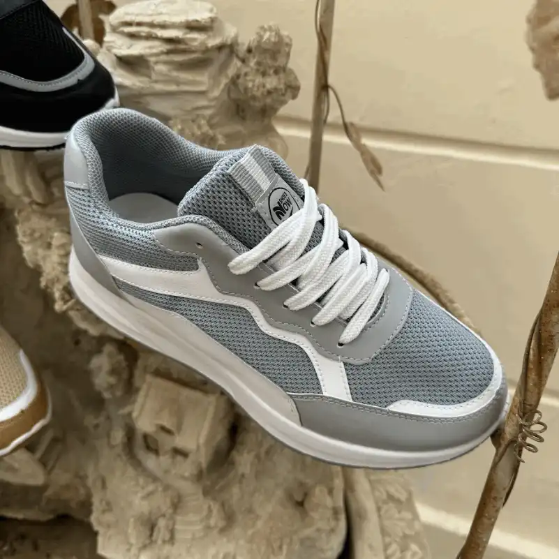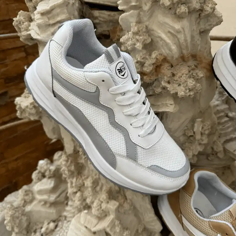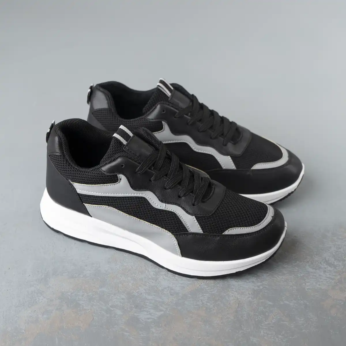 كوتشي اسنيكرز رجالي مصنوع من التريكو ومدعم بأجزاء من الجلد المستورد
