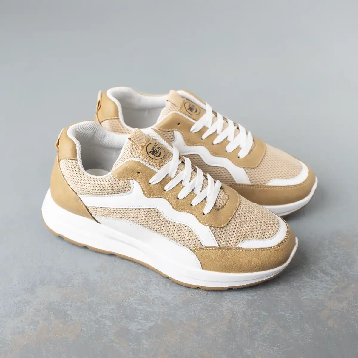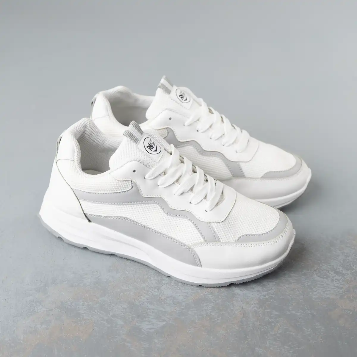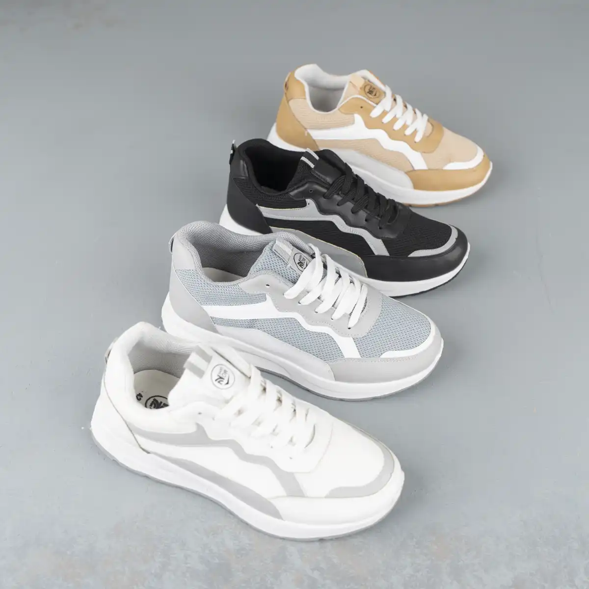 كوتشي اسنيكرز رجالي مصنوع من التريكو ومدعم بأجزاء من الجلد المستورد