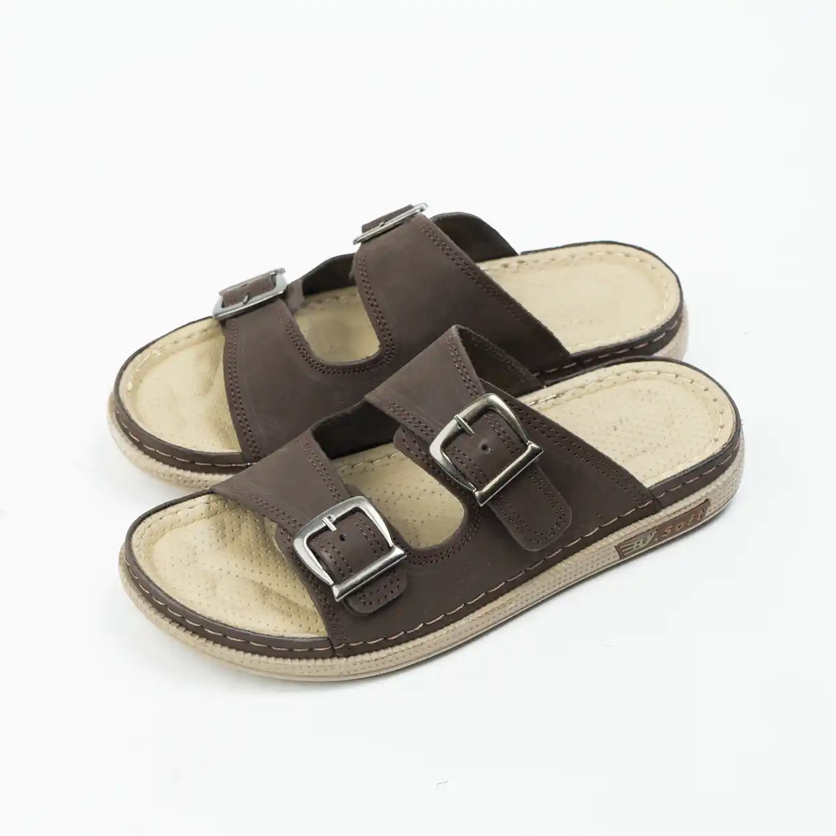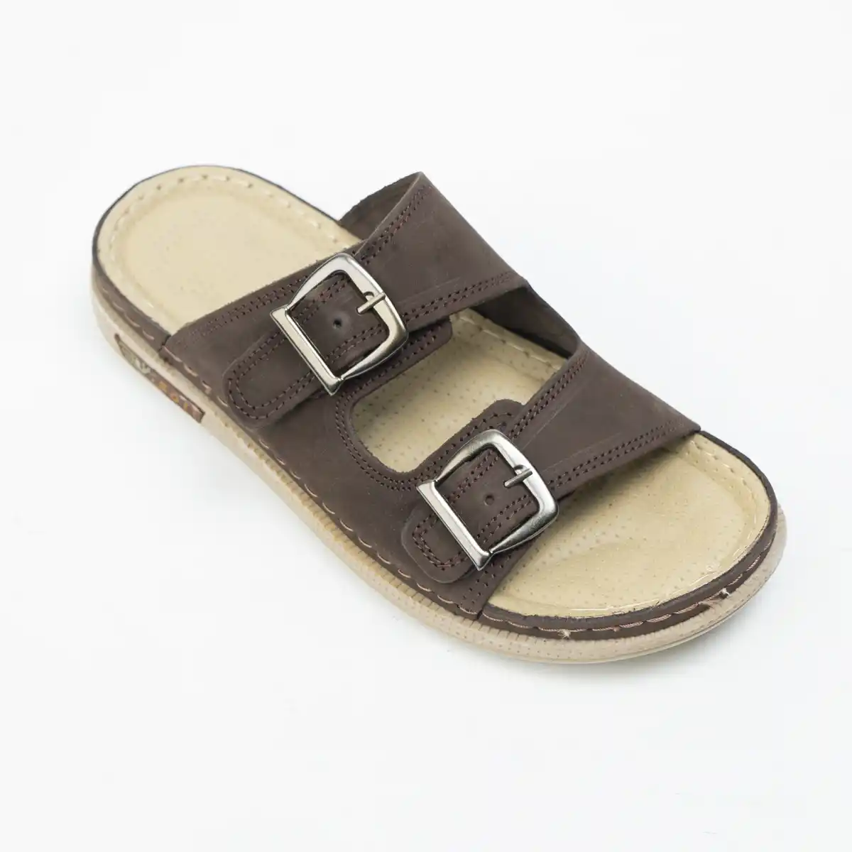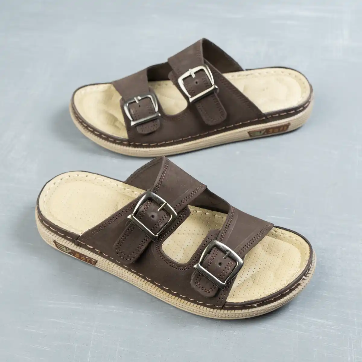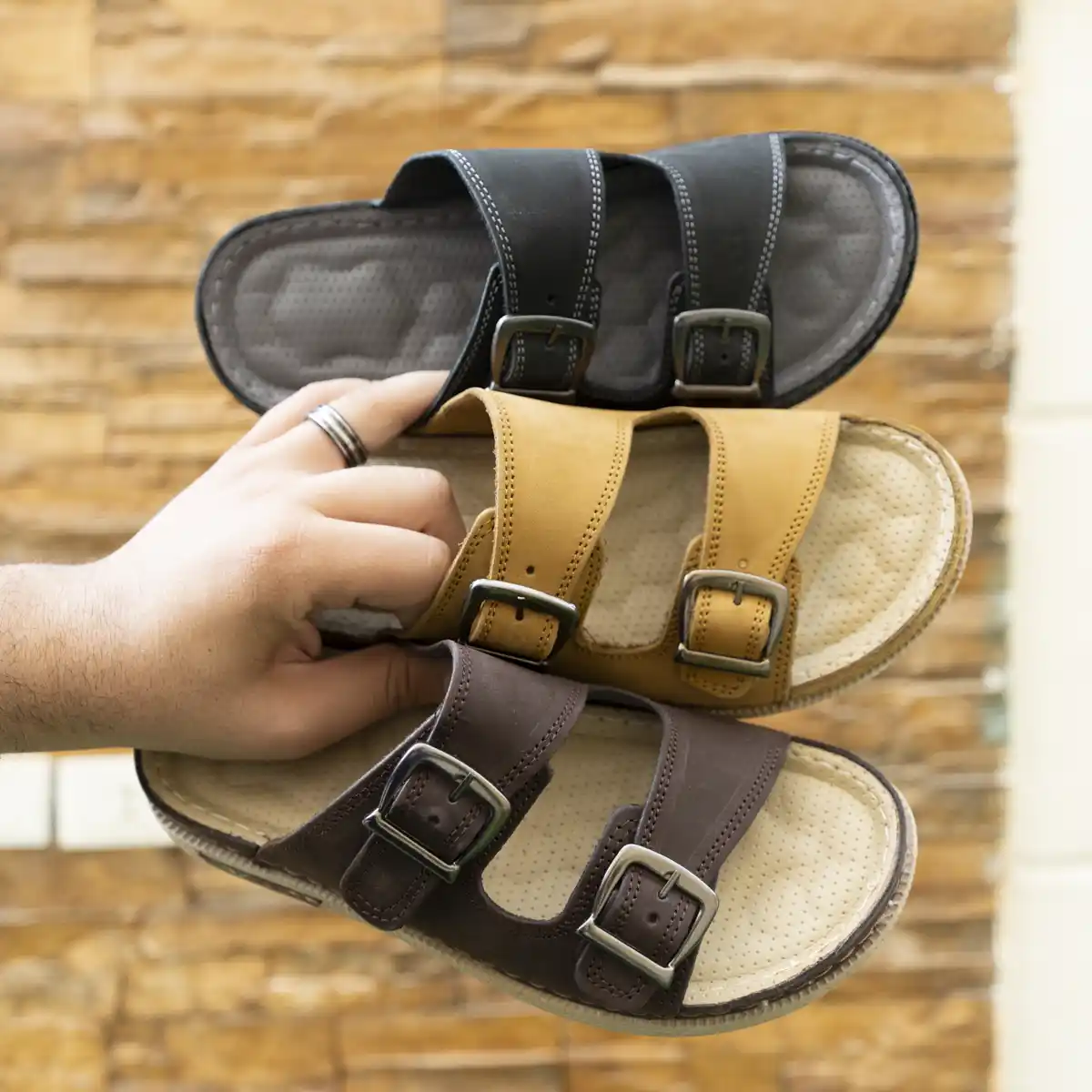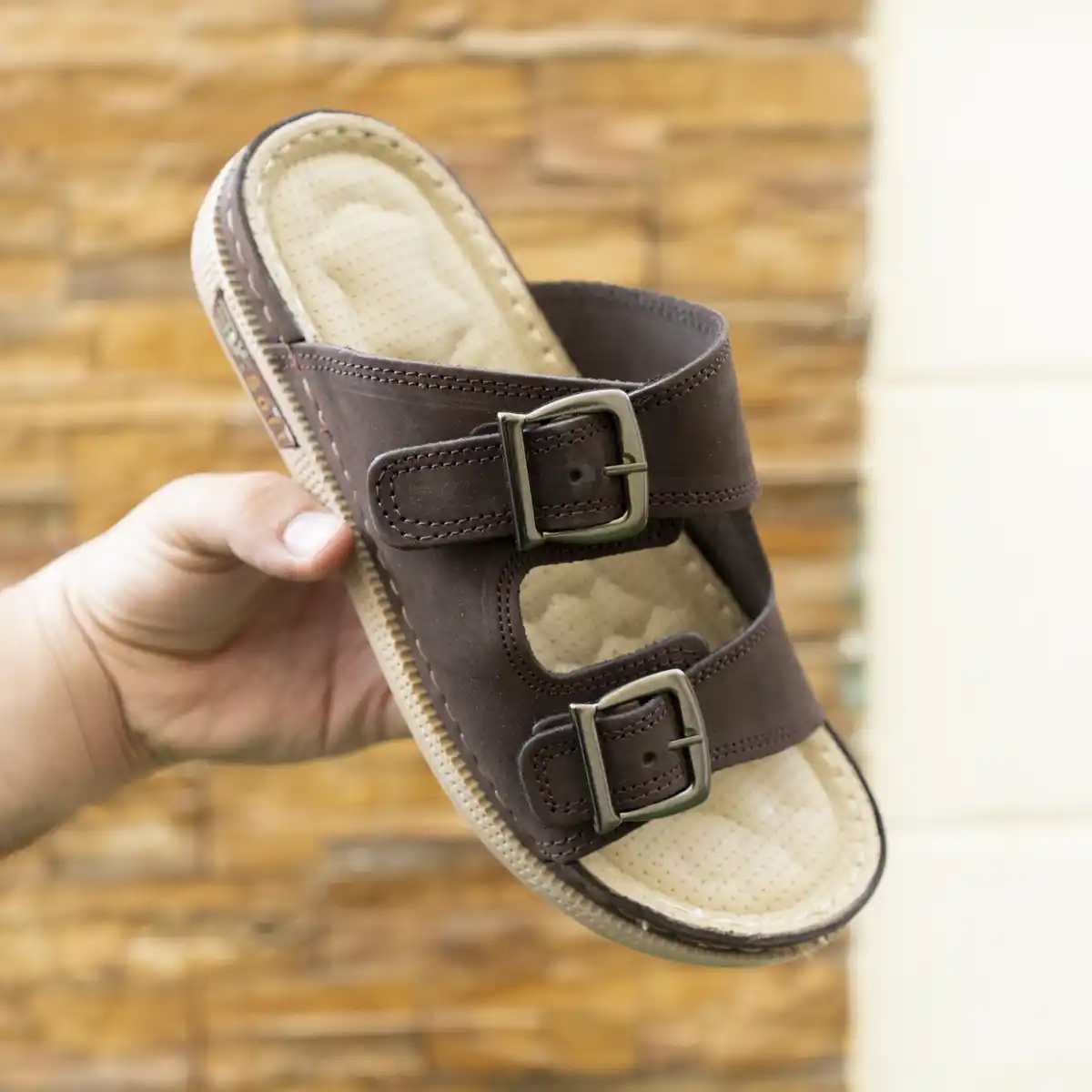 شبشب رجالى خياطة يدوية بالكامل ٢ ابزيمة شمواة جلد طبيعى فرش طبي مريح على الرجل