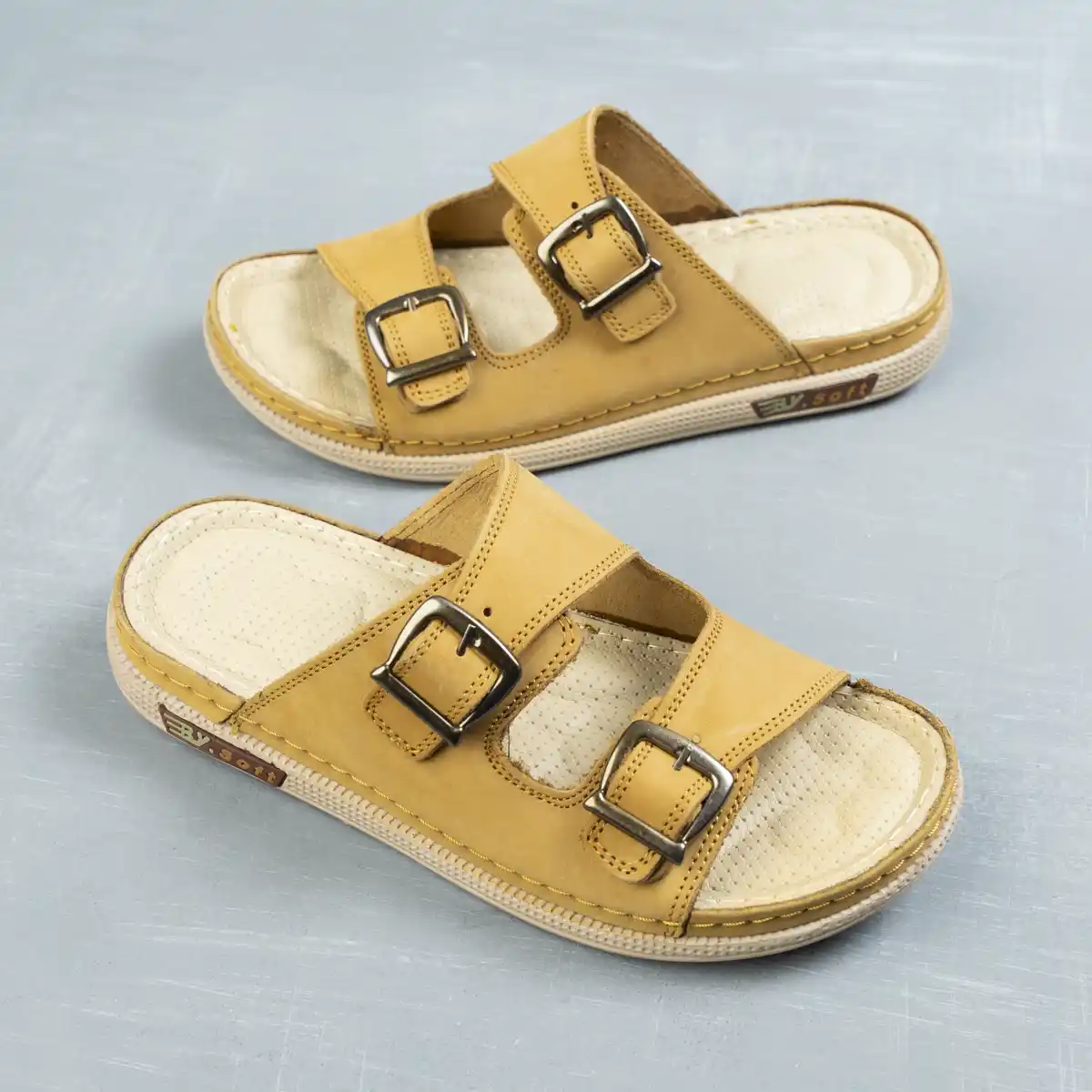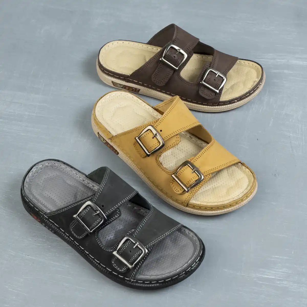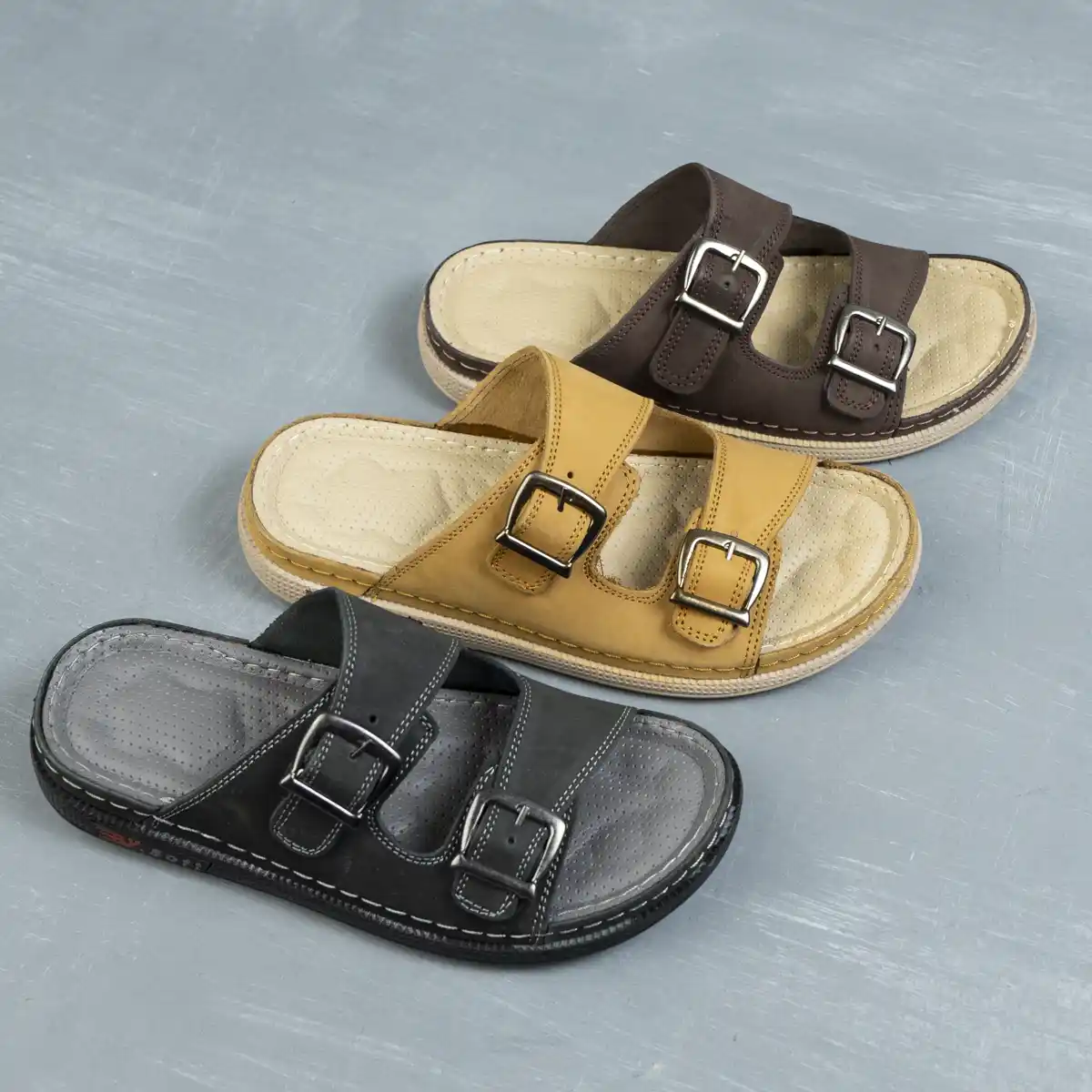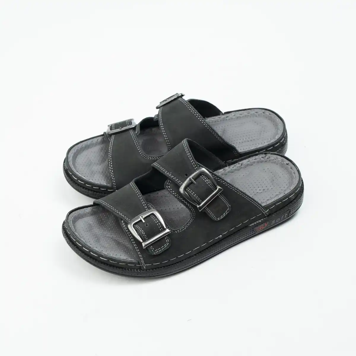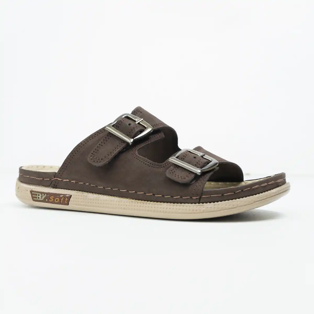 شبشب رجالى خياطة يدوية بالكامل ٢ ابزيمة شمواة جلد طبيعى فرش طبي مريح على الرجل