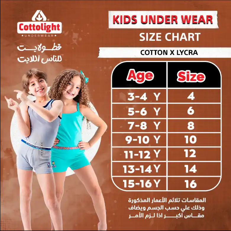 - المقاسات: من ٤ سنوات إلى ١٦ سنة