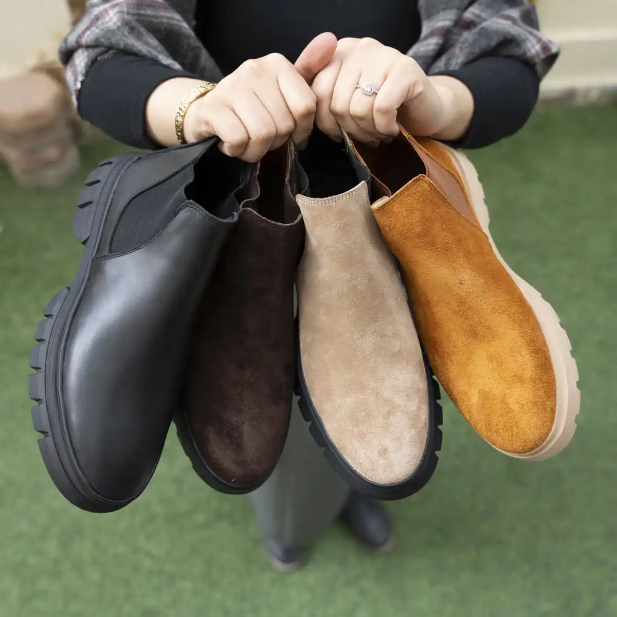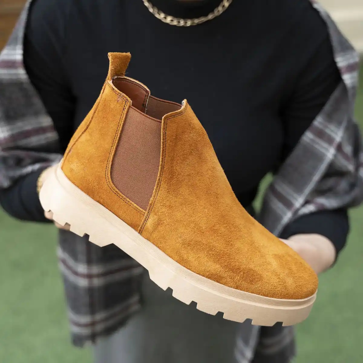 حذاء جلد طبيعي - شمواه مناسب للخروجات والمناسبات ومزود باستيك من الجانب