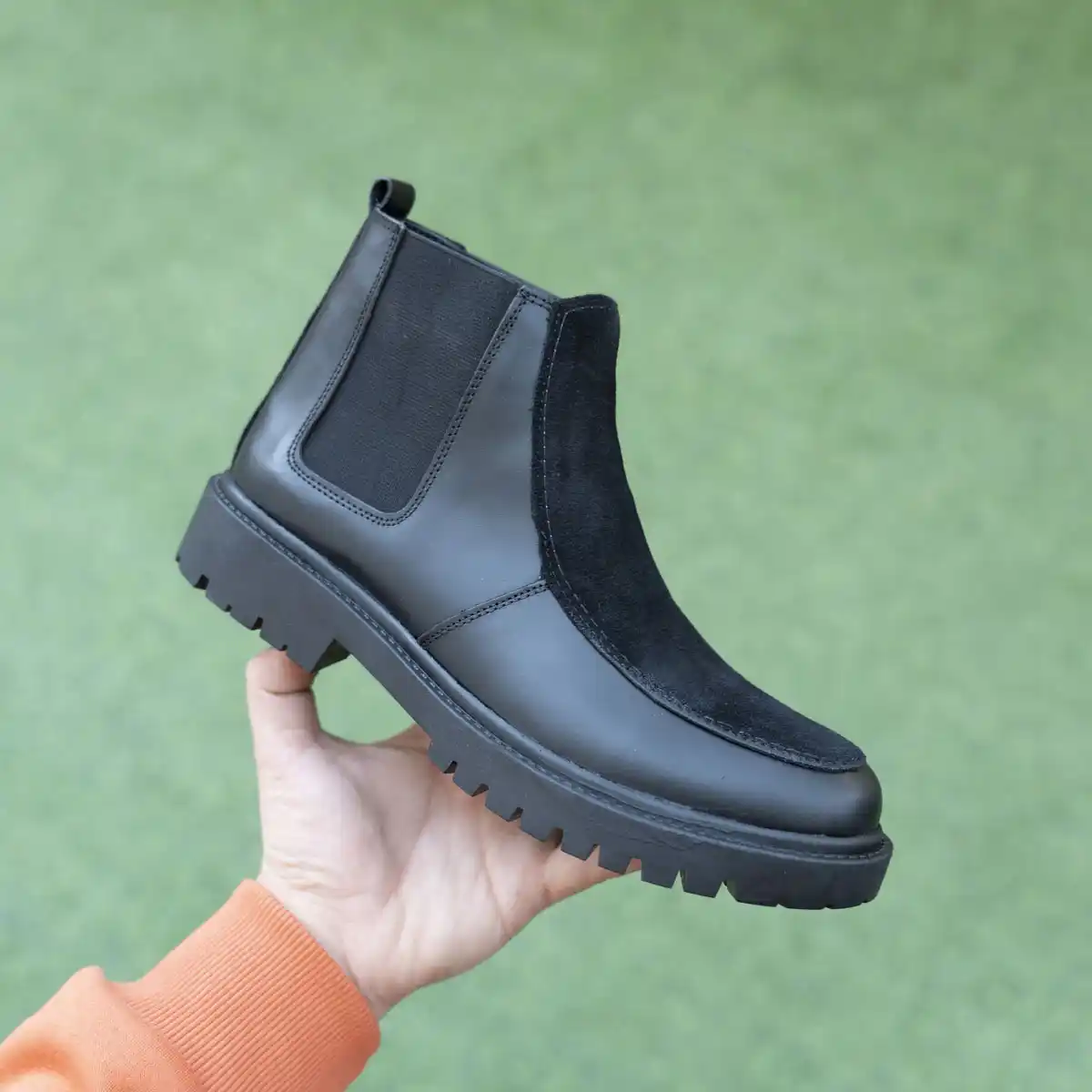 حذاء جلد طبيعي مطعم بشمواه طبيعي نعل الحذاء رابر قوي ومريح جدا تلبيس مريح وشيك , مزود بفرش محترم مريح فاللبس