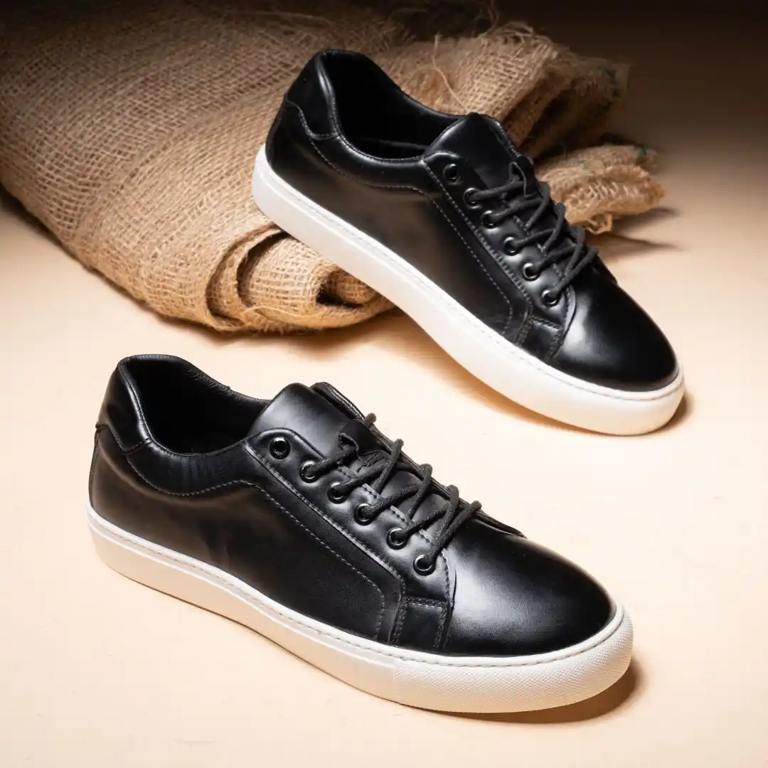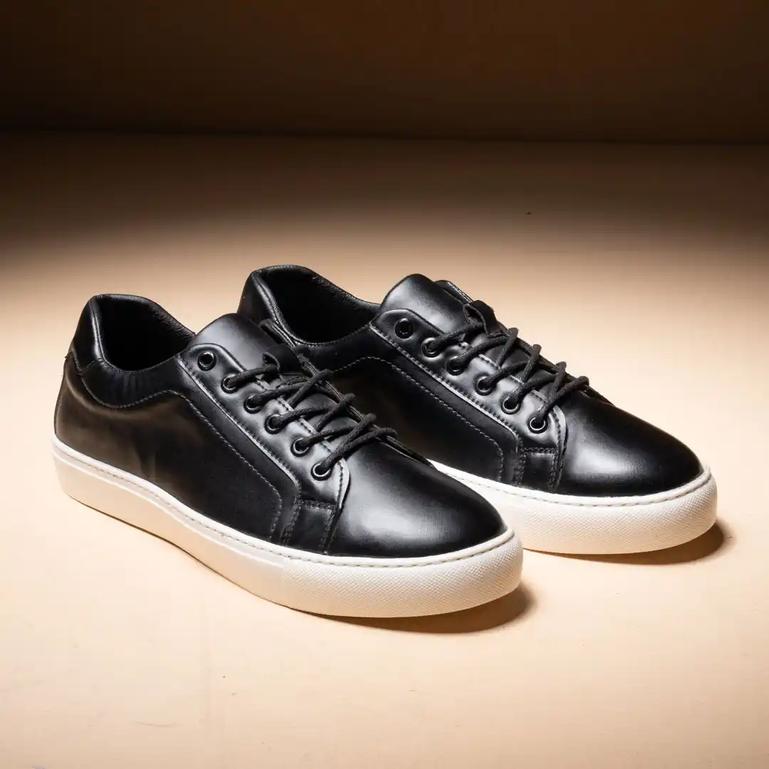 سنيكرز جلد اسود شيك جدا موديل مميز مريح مزود ب فرش طبي