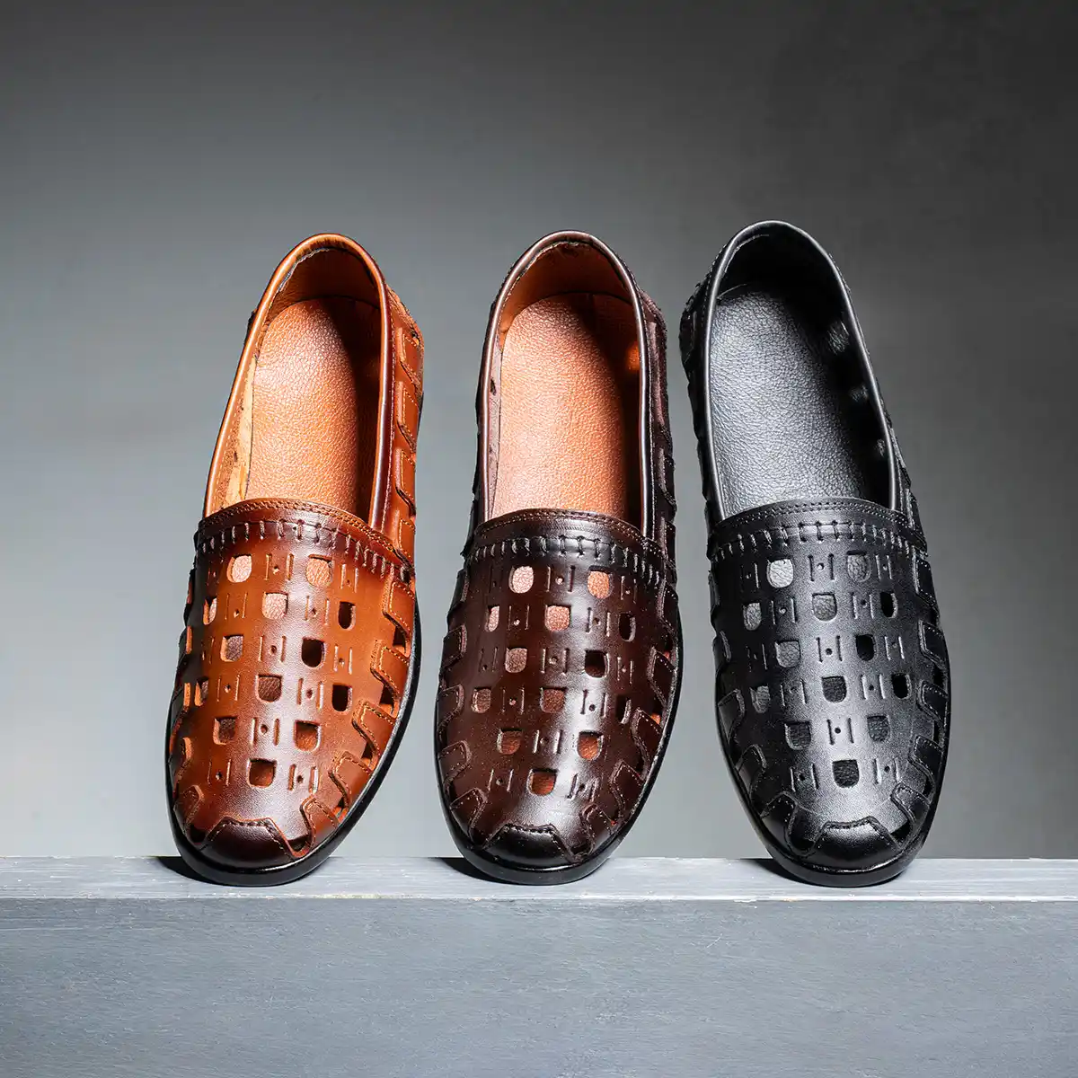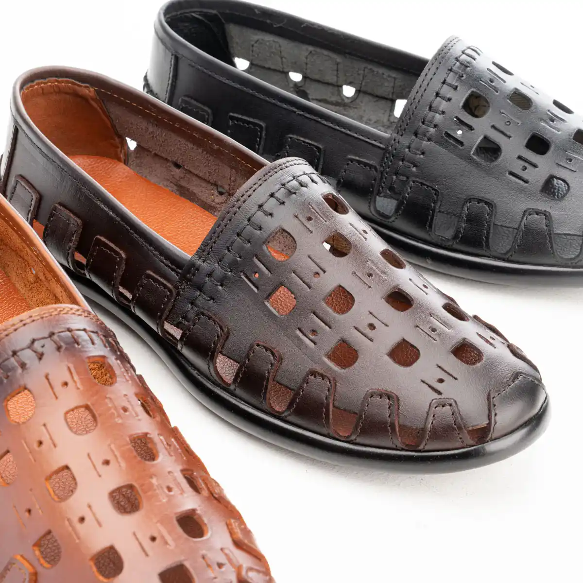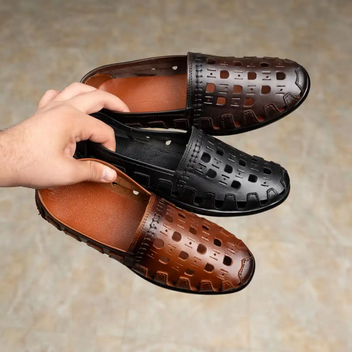 حذاء رجالي جلد طبيعي بتصميم عصري بفتحات تهوية لاحساس بالخفة والانتعاش طول اليوم