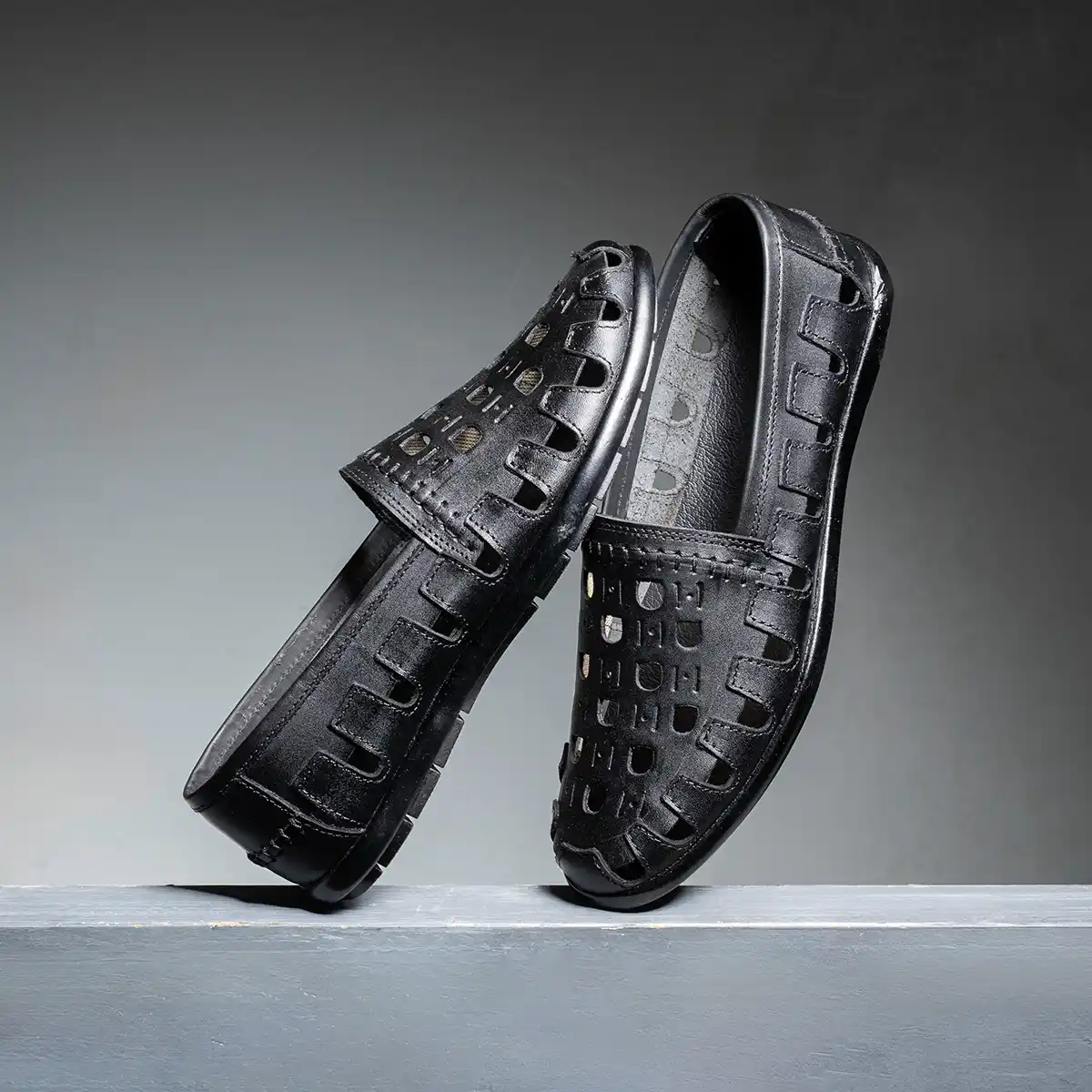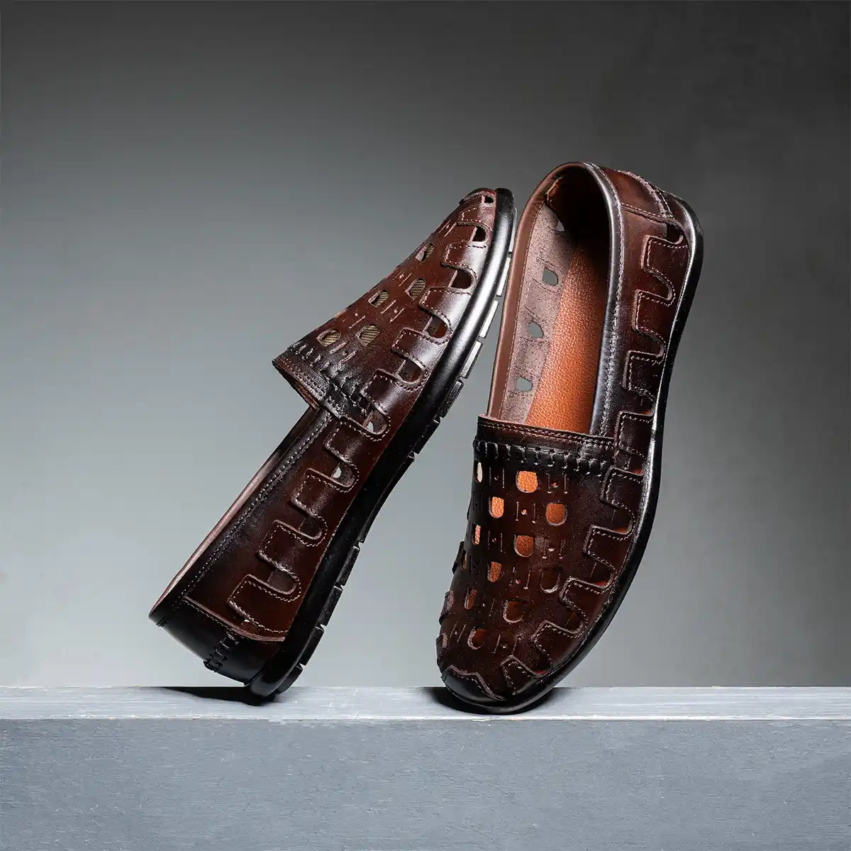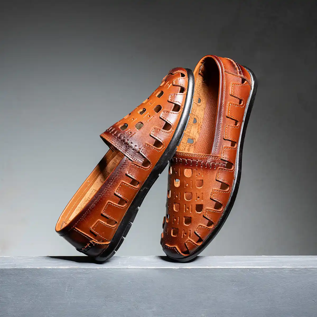 حذاء رجالي جلد طبيعي بتصميم عصري بفتحات تهوية لاحساس بالخفة والانتعاش طول اليوم