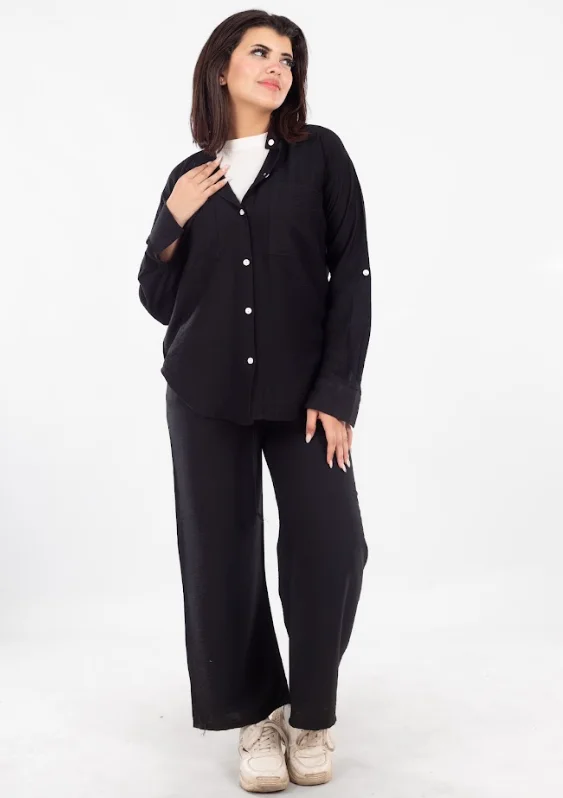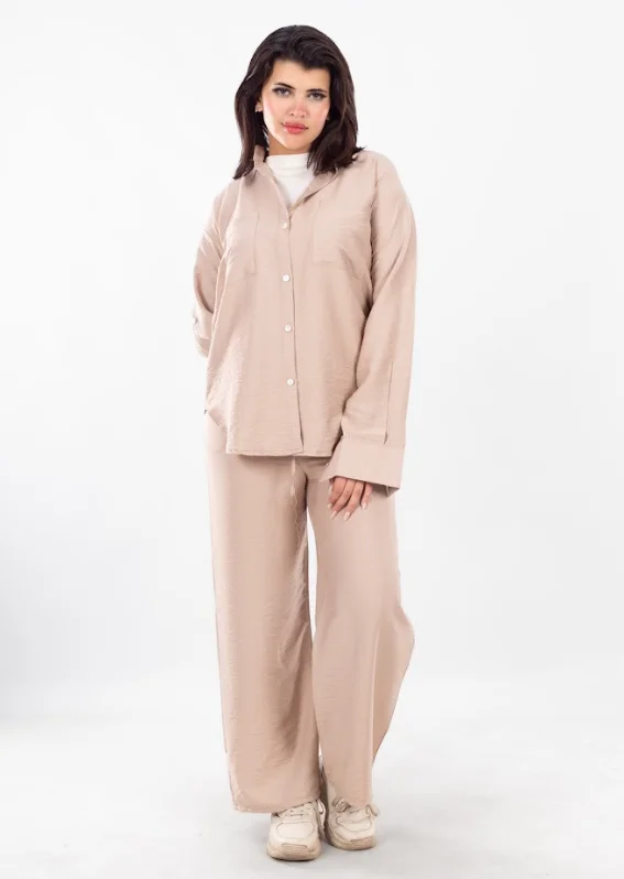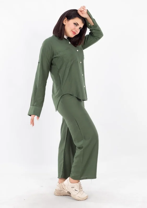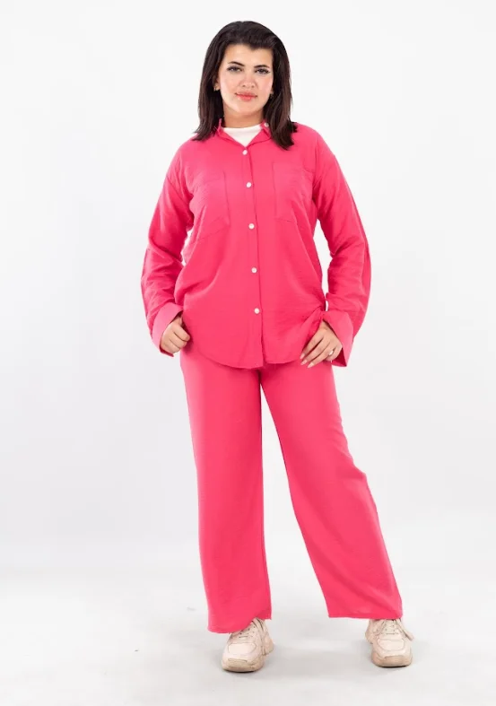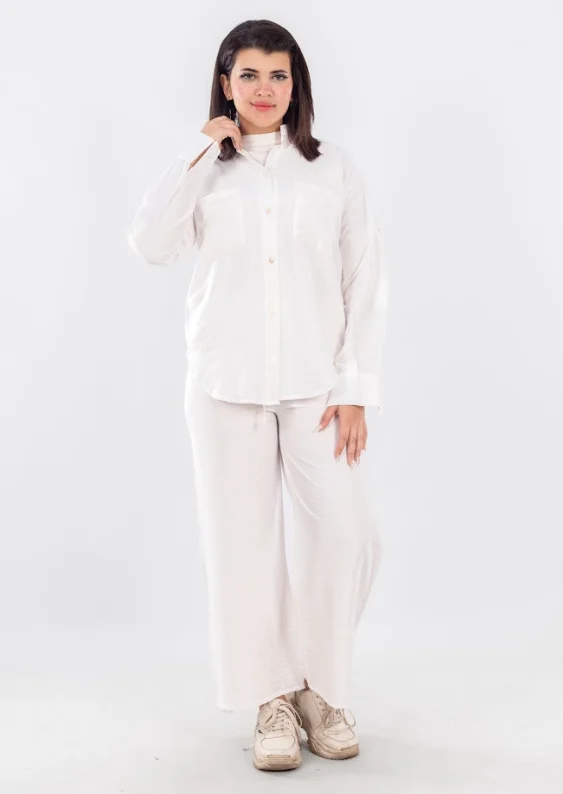 سوت حريمي كتان – قطعتين (قميص + بنطلون)