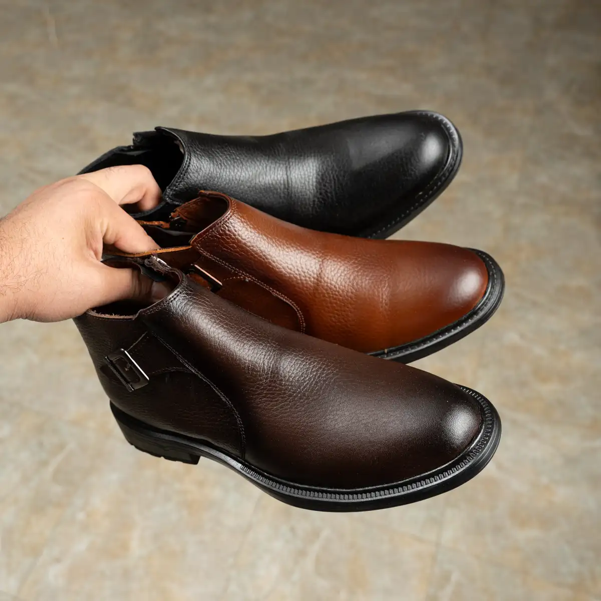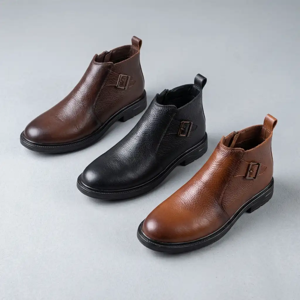 هاف بوت رجالي جلد مكسر طبيعي ١٠٠٪ بخامه فاخره