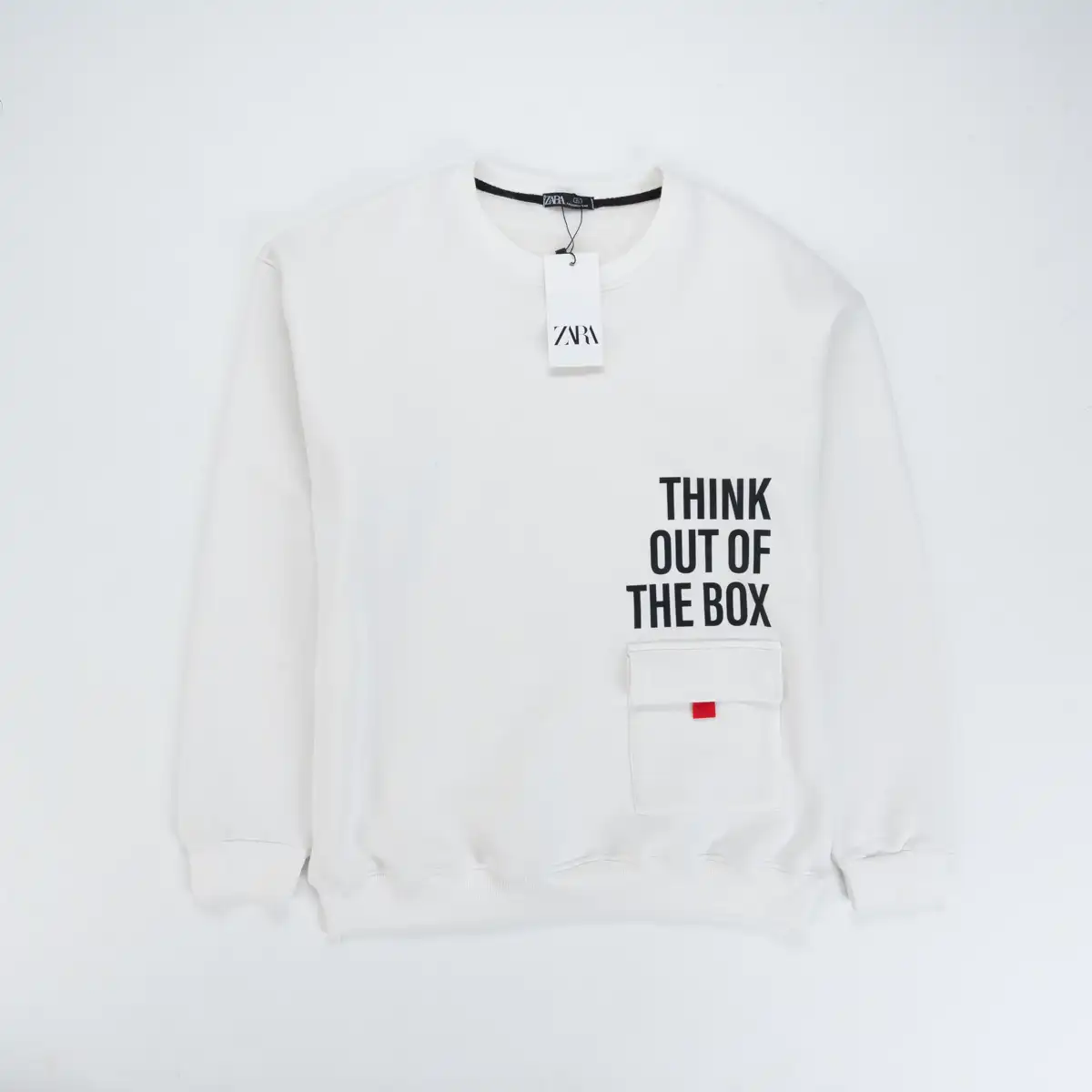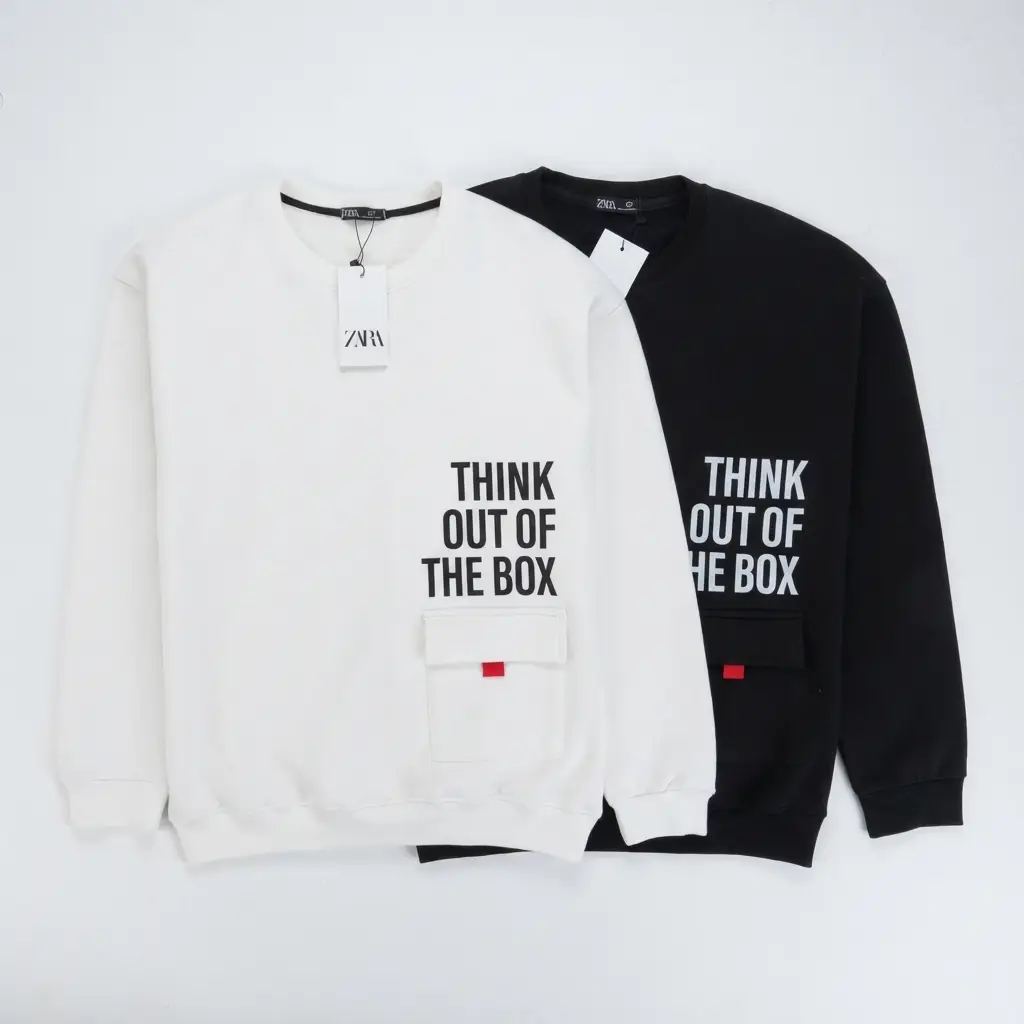 طباعة شعار THINK OUT OF THE BOX بجوده عاليه فوق الجيب