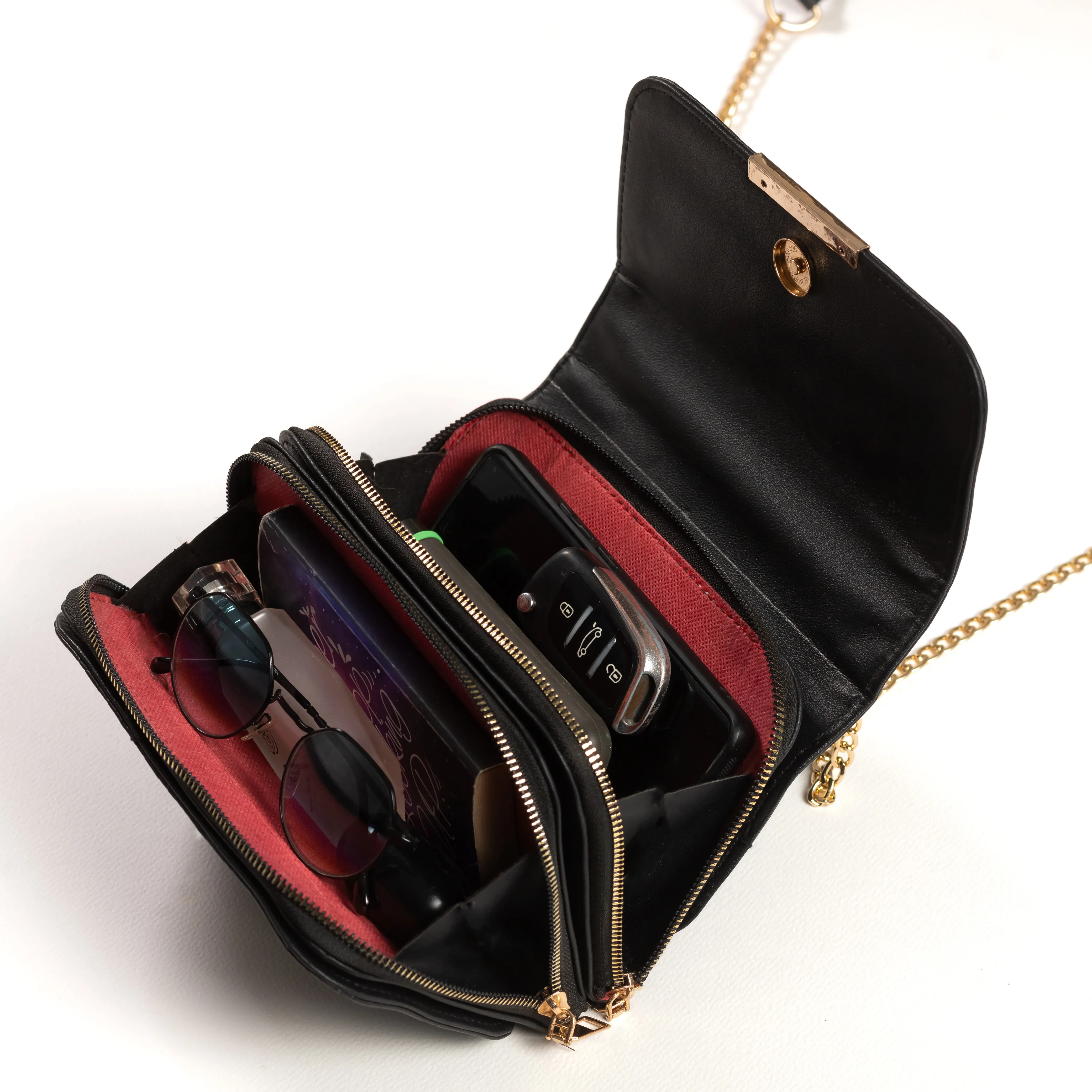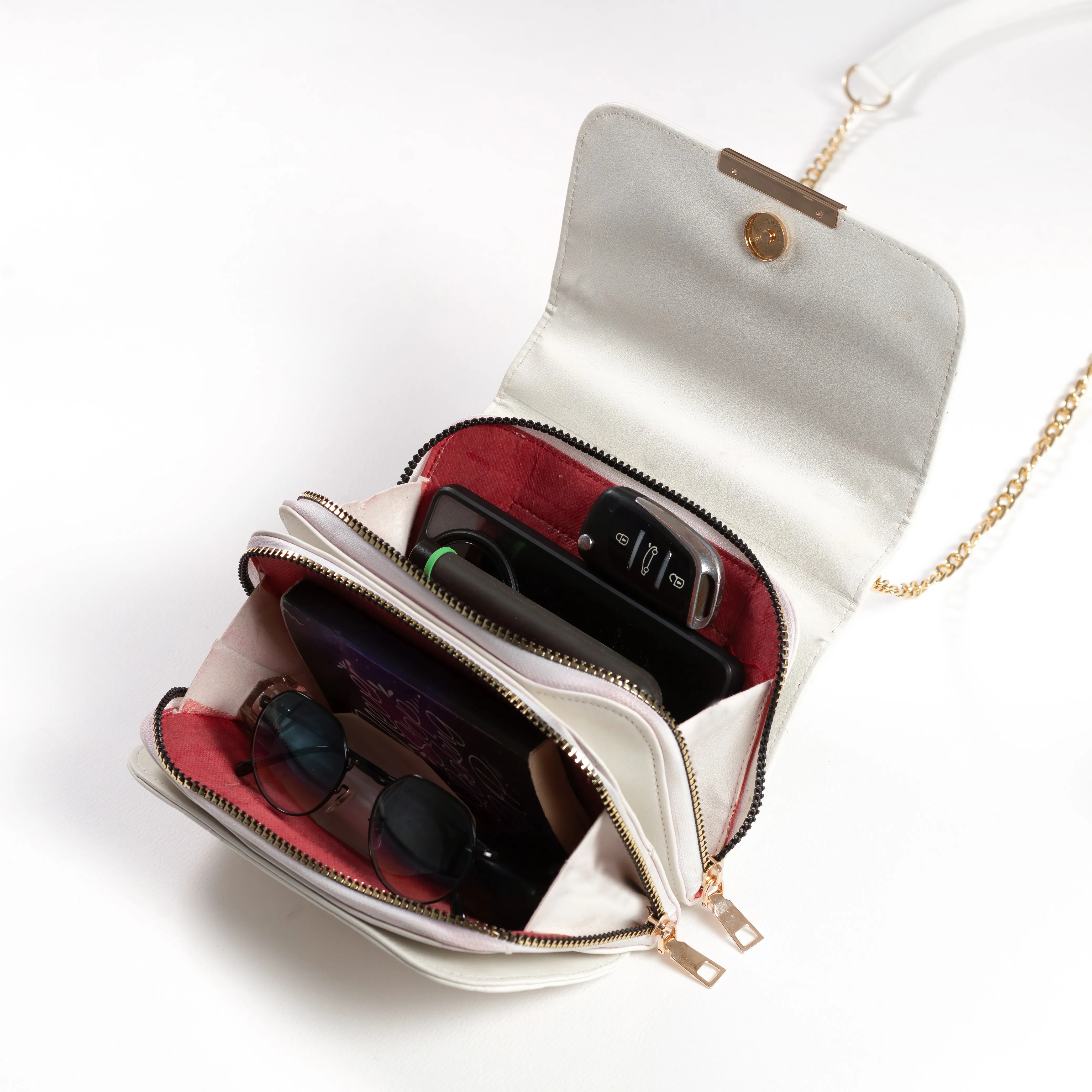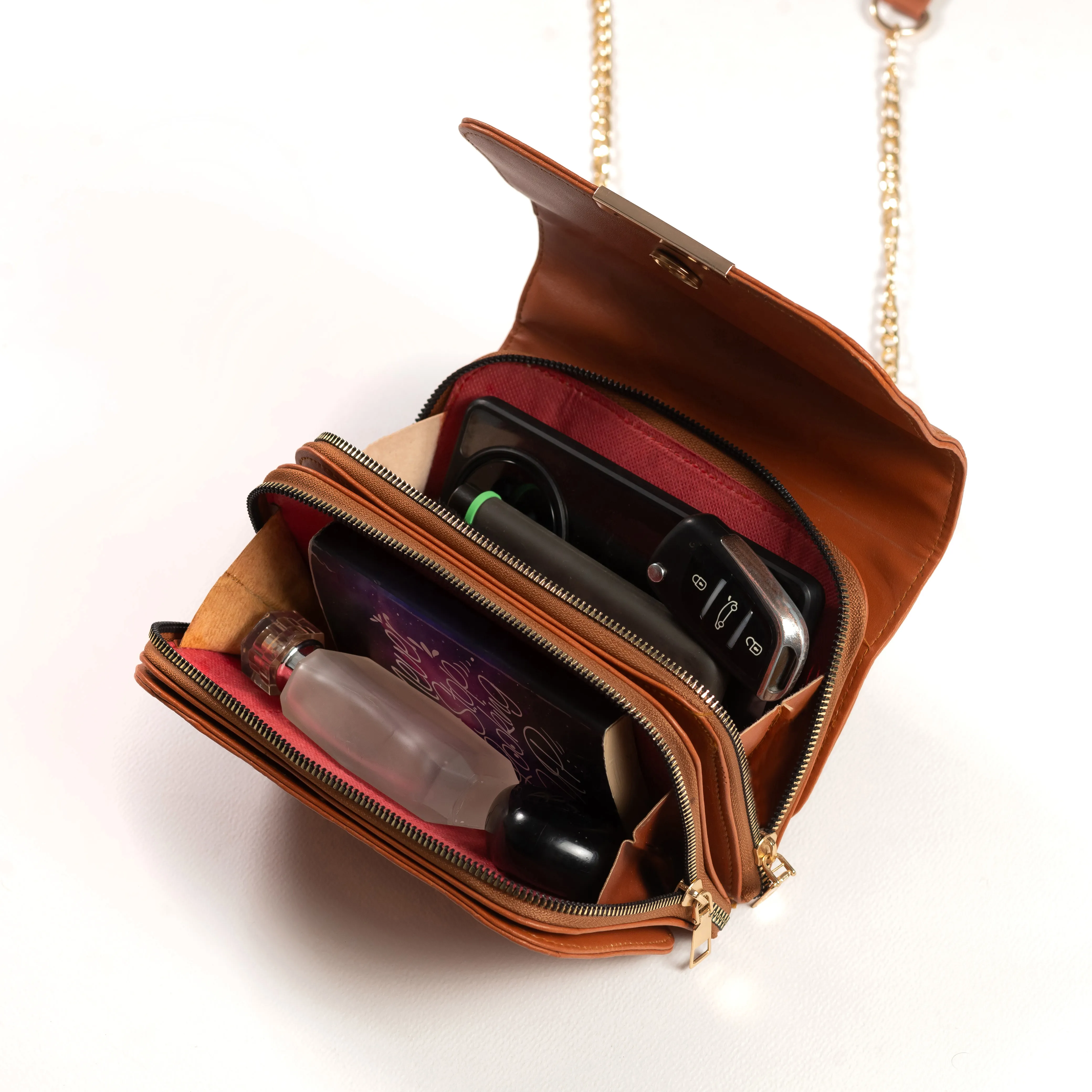 -حزام الشنطه متميز ومريح فهو مصنوع من الجلد ومضاف اليه سلسلة ذهبيه من الاطراف مما يجعلها جذايه.