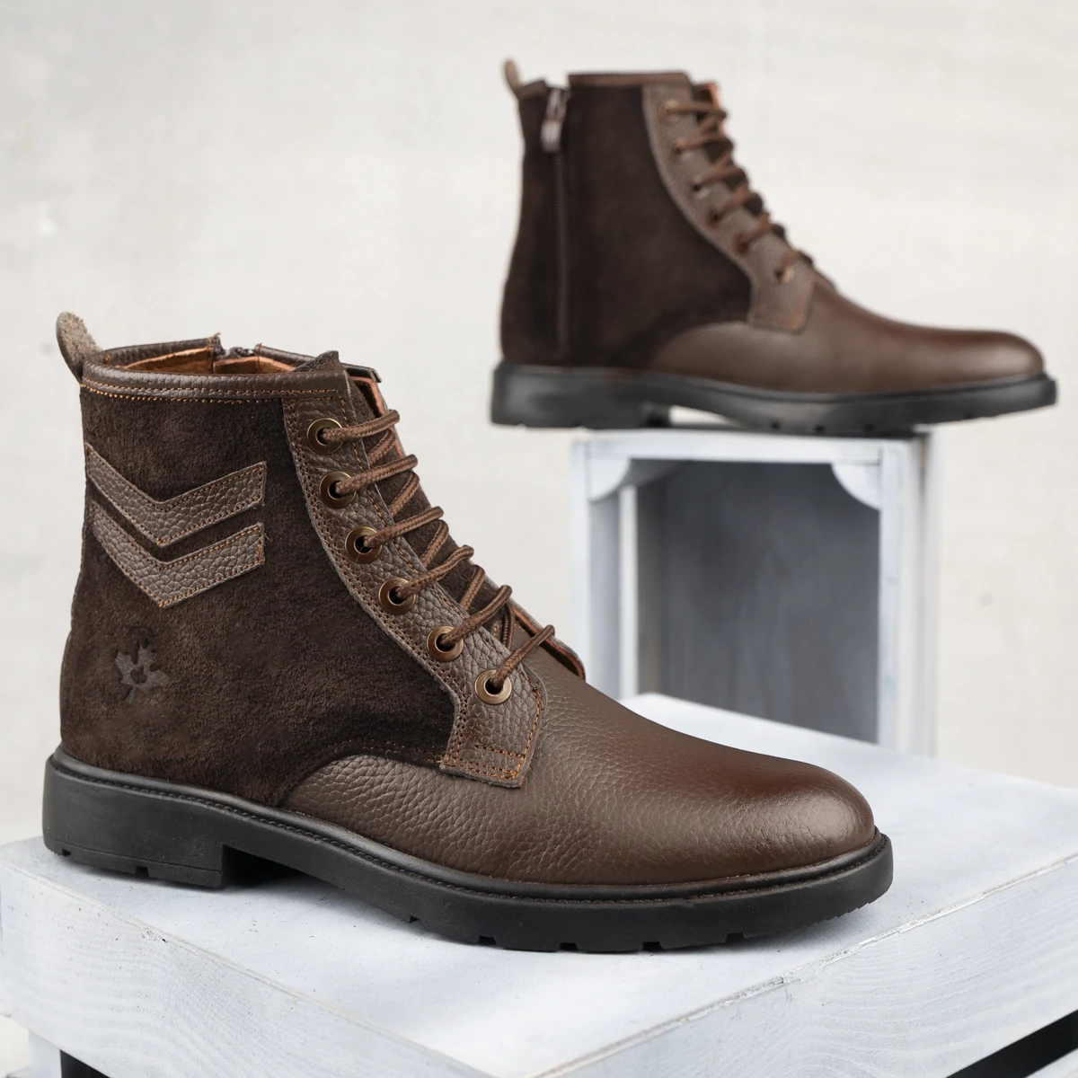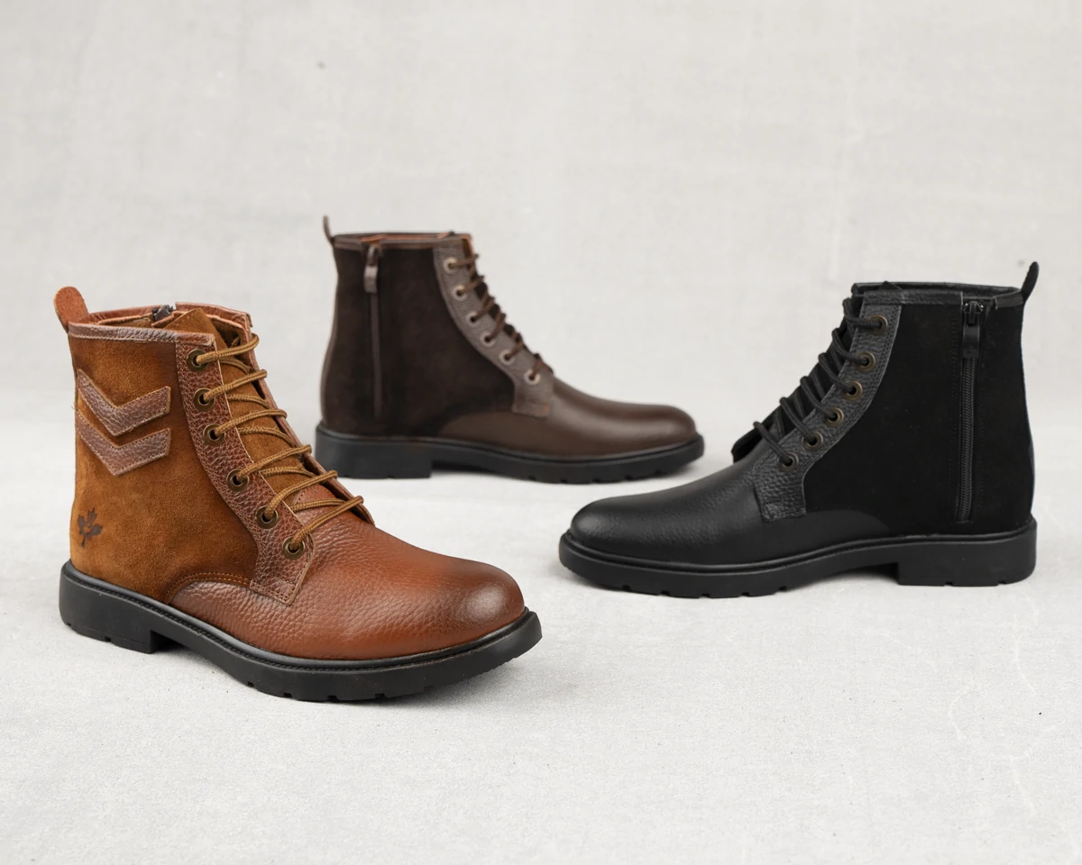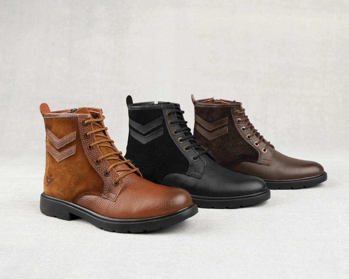 حذاء جلد طبيعي مطعم شمواة طبيعي مبطن شمواة من الداخل