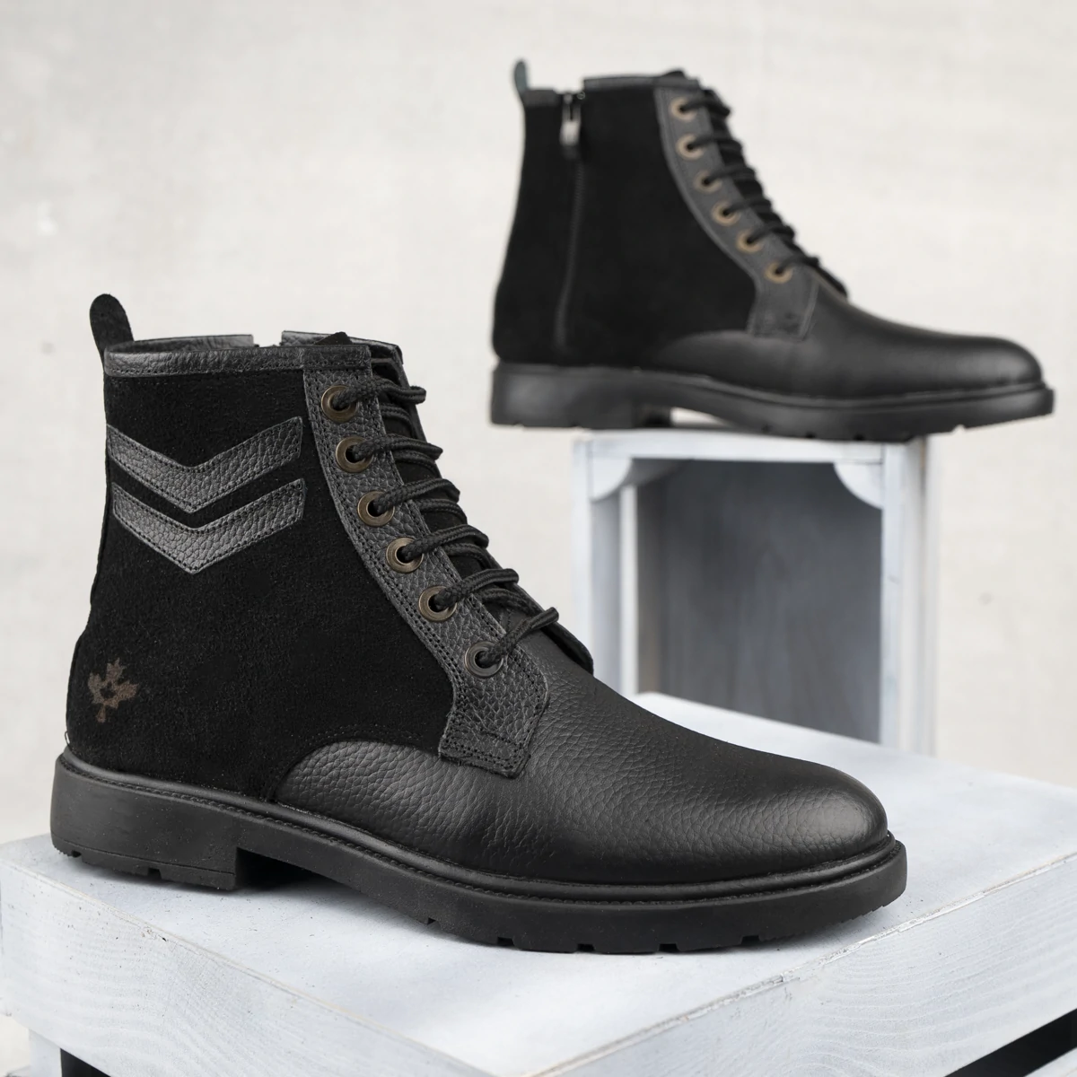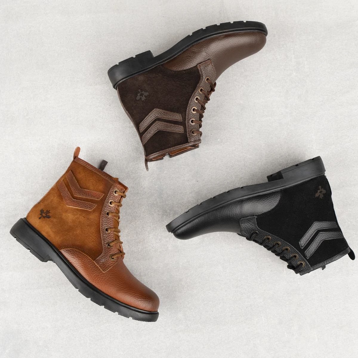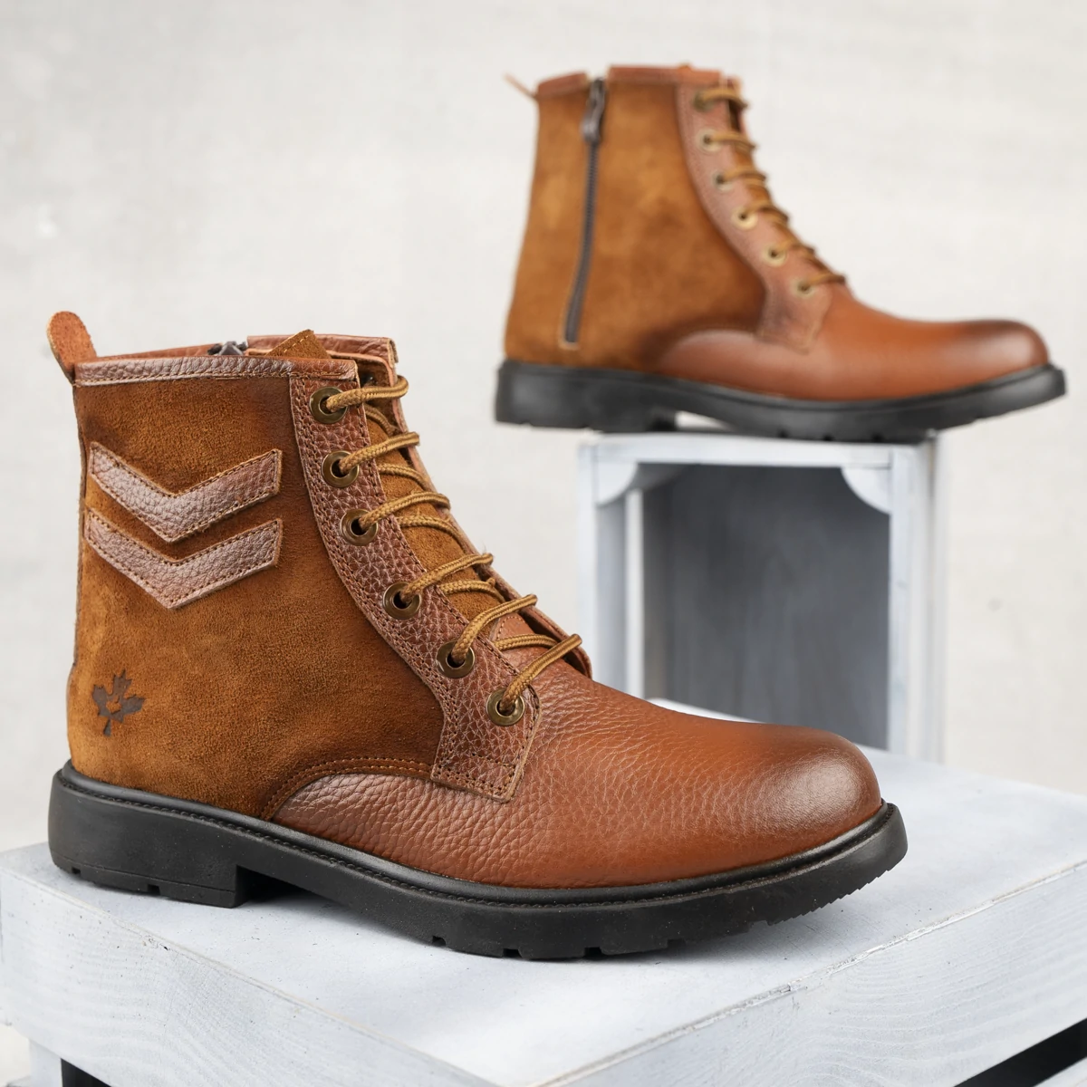 حذاء جلد طبيعي مطعم شمواة طبيعي مبطن شمواة من الداخل