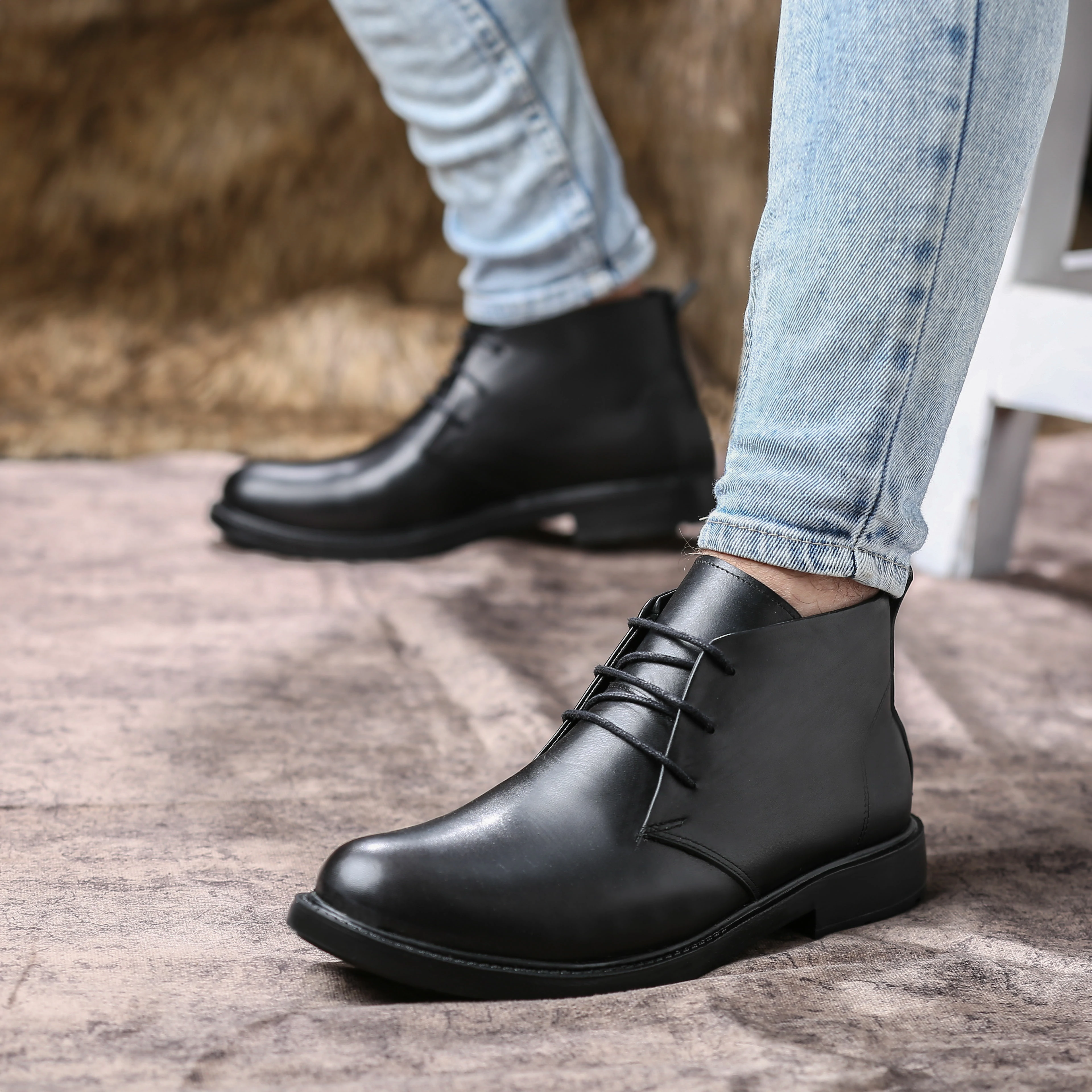 حذاء جلد طبيعي نعل رابر بيور